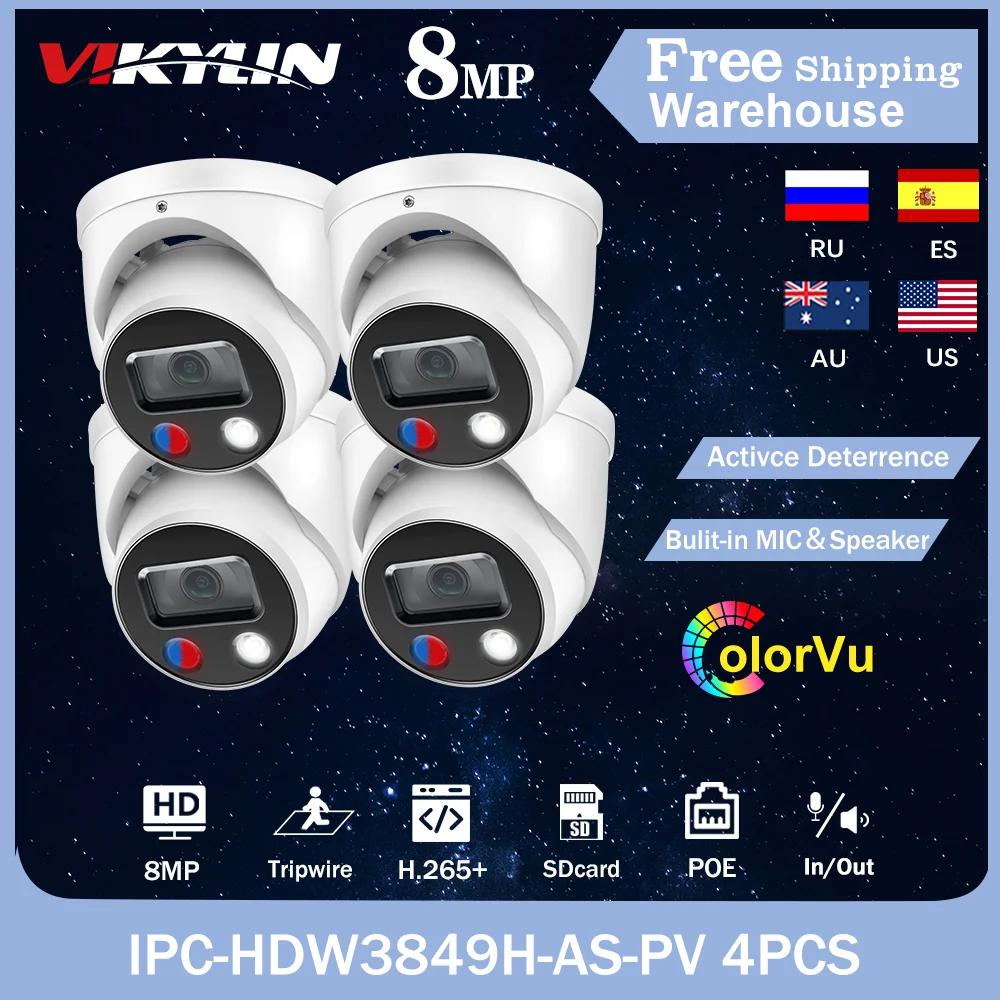 Dahua OEM 8MP IP-камера WizSense IPC-HDW3849H-AS-PV полноцветная H265 + POE встроенный микрофон и динамик безопасности CCTV купольная видеокамера 4 шт.