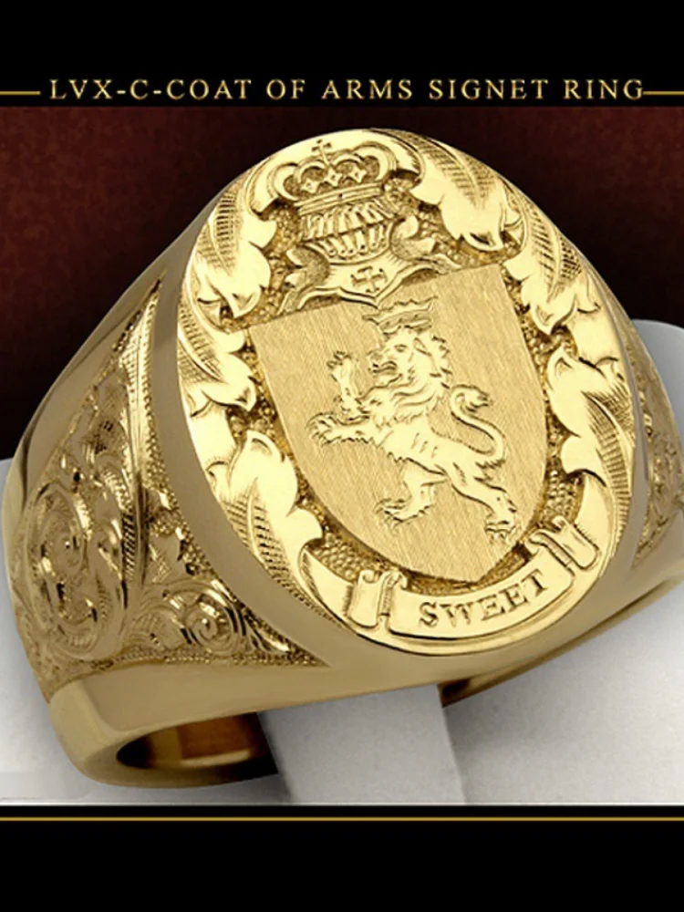 Название продукта: Взрывная Корона Льва щит значок кольцо европейский и американский 18k позолоченное Королевское уплотнение мужское кольцо