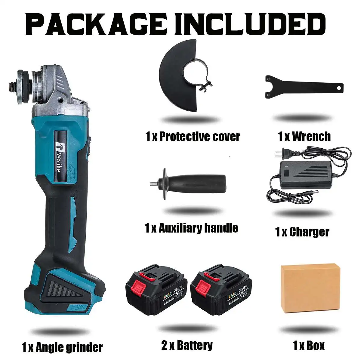 Угловая шлифовальная машина Wolike, 125 мм, 3 скорости, аккумуляторная, 388VF