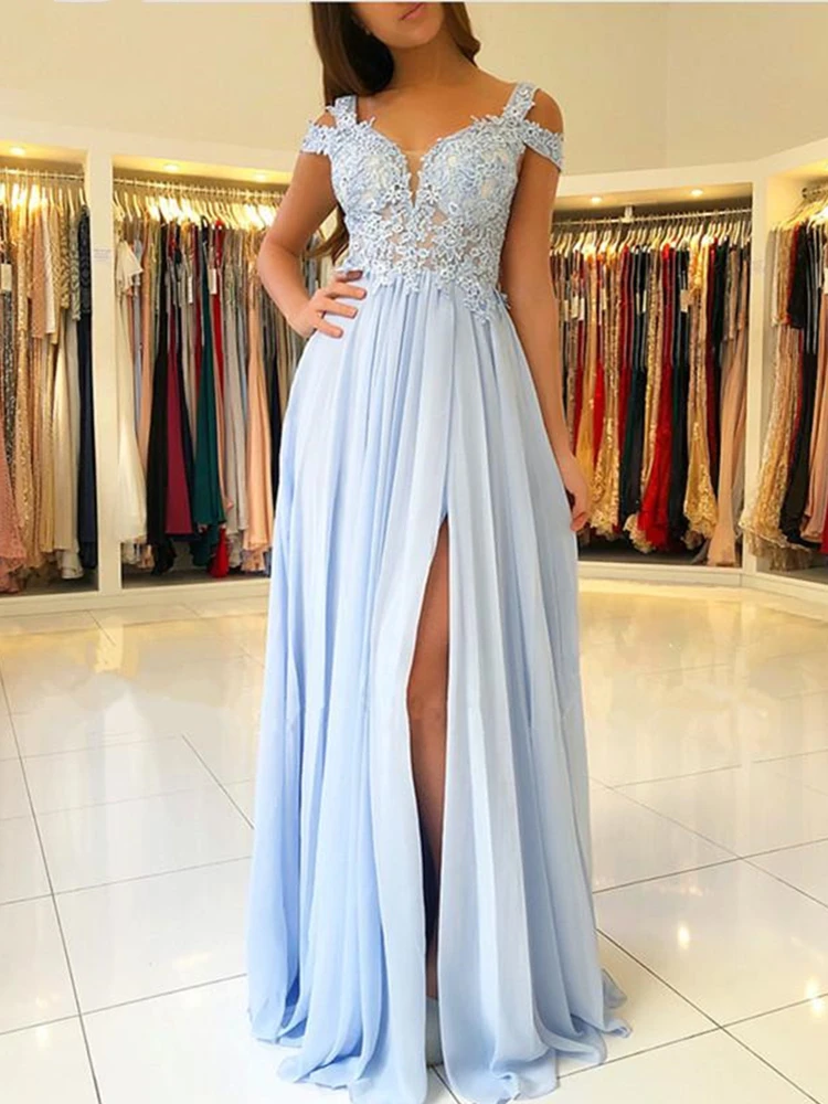 2021 длинные платья для выпускного небесно-голубого цвета с Боковым Разрезом, кружевные платья с открытыми плечами и аппликацией для выпускного вечера, платье для гостей свадьбы, горничной