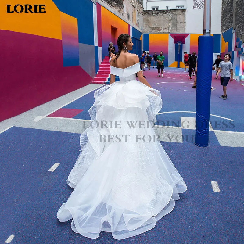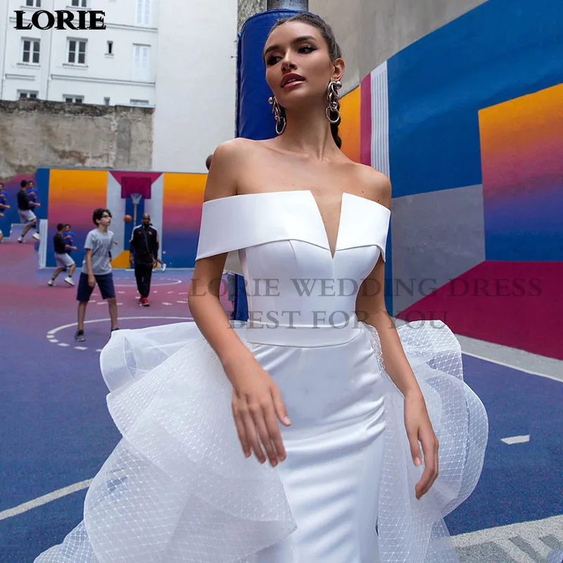 Классические свадебные платья-русалки LORIE, 2 предмета, женское эластичное атласное свадебное платье с открытыми плечами и съемным шлейфом