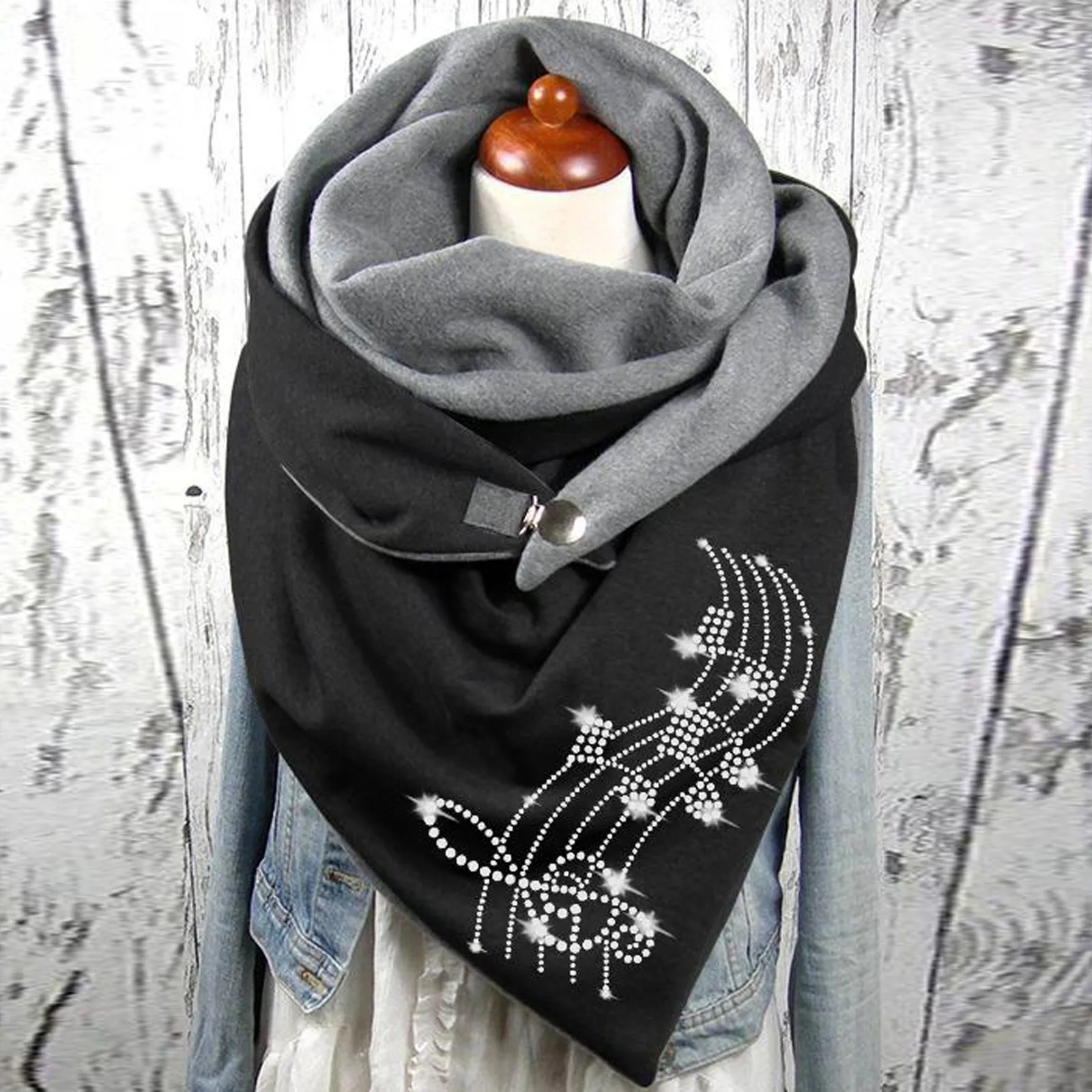Шарф роскошный брендовый с блестками и бриллиантами на осень и зиму Модные женские шарфы на пуговицах с принтом мягкая накидка повседневные теплые шарфы шали
