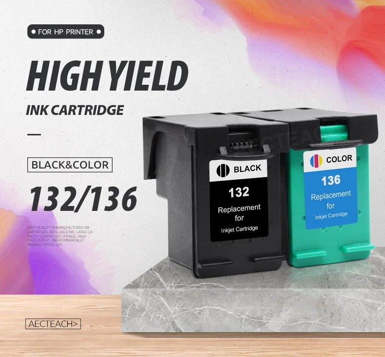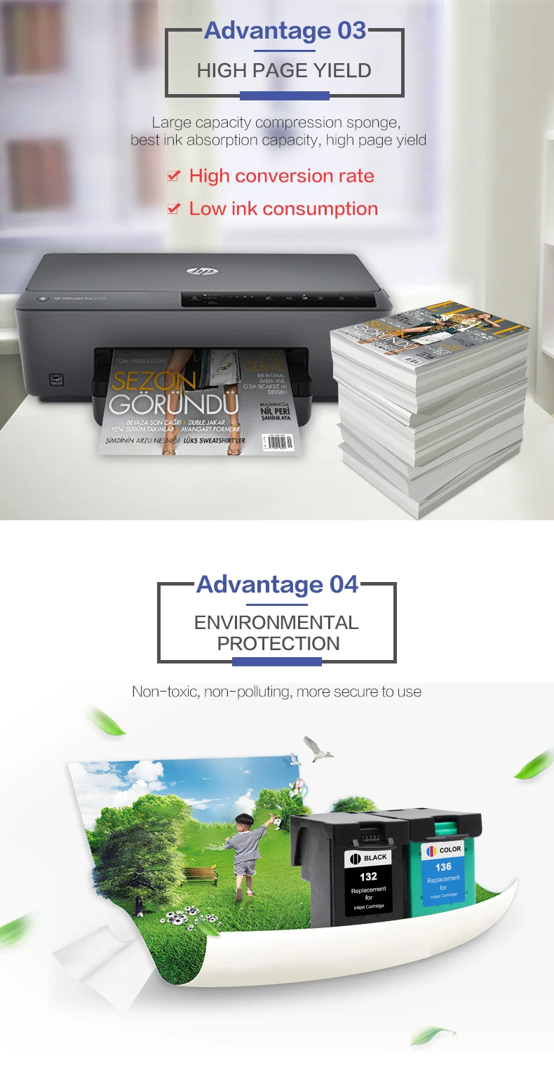 Ompatible для HP 132 136 Восстановленный чернильный картридж
