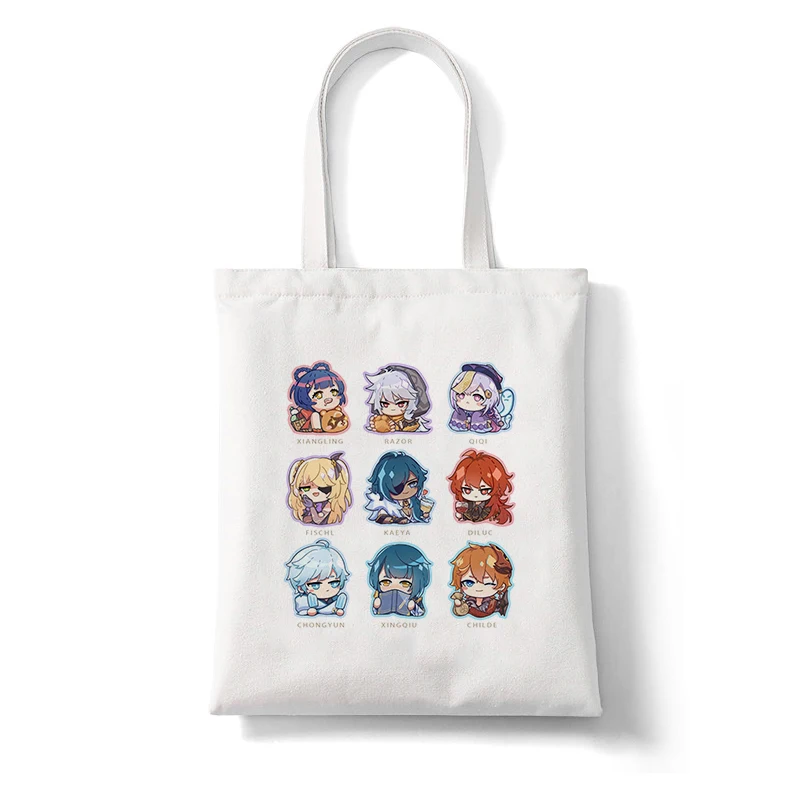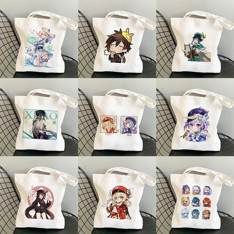 Сумка для покупок в стиле Харадзюку, холщовая вместительная складная сумка для покупок Game Genshin Impact, милый аниме, сумочка на плечо