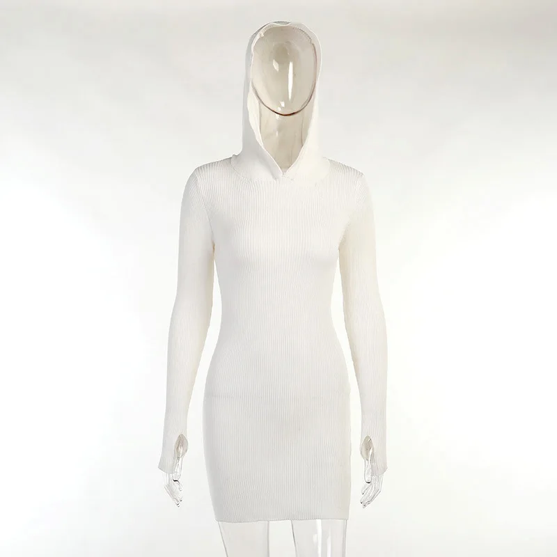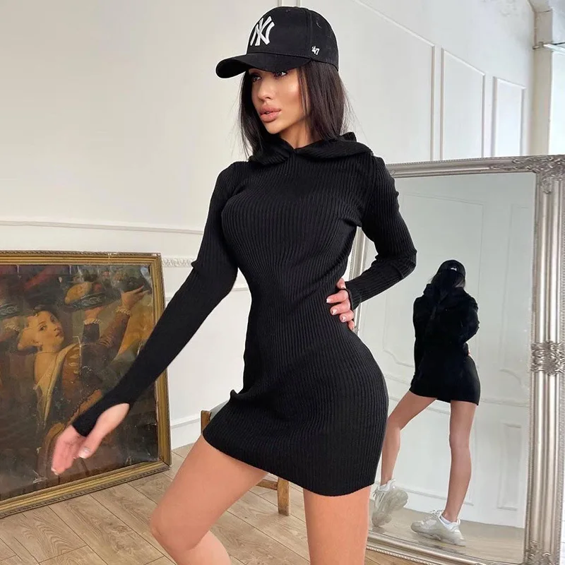 Новинка 2021, повседневное женское платье с капюшоном, вечернее платье с длинным рукавом, однотонное женское мини-платье с высокой талией, уличная одежда, модные осенние платья