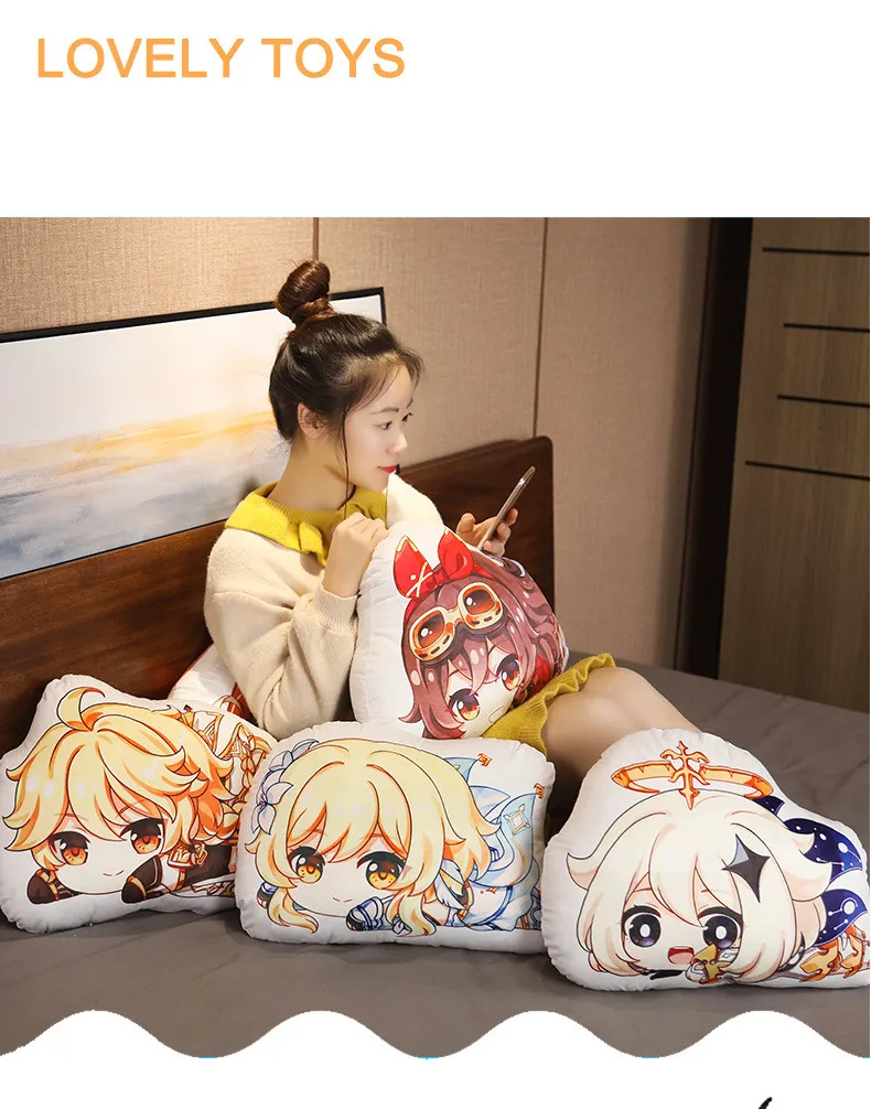 Genshin анимационная периферическая двухсторонняя подушка, кукла Эмбер Барбара Кли, плюшевые игрушки, Этерия, люминесцентная кукла, подвеска в сумку, подарки
