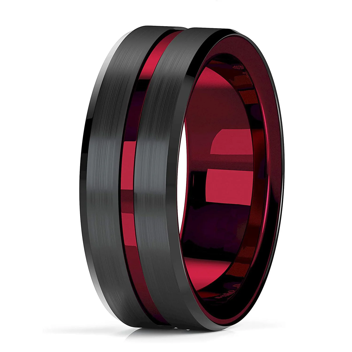 Винтажное мужское кольцо с красной канавкой, черное вольфрамовое обручальное кольцо, ретро панк механическое кольцо с зубчатой передачей, инкрустированное красное кольцо из углеродного волокна