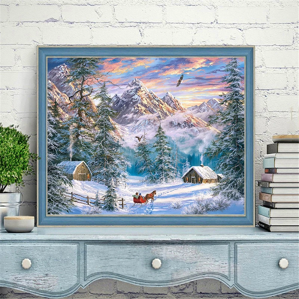 HUACAN картина по номеру зимняя DIY рамка картина по номерам Снежная стена художественная акриловая Картина на холсте для украшения