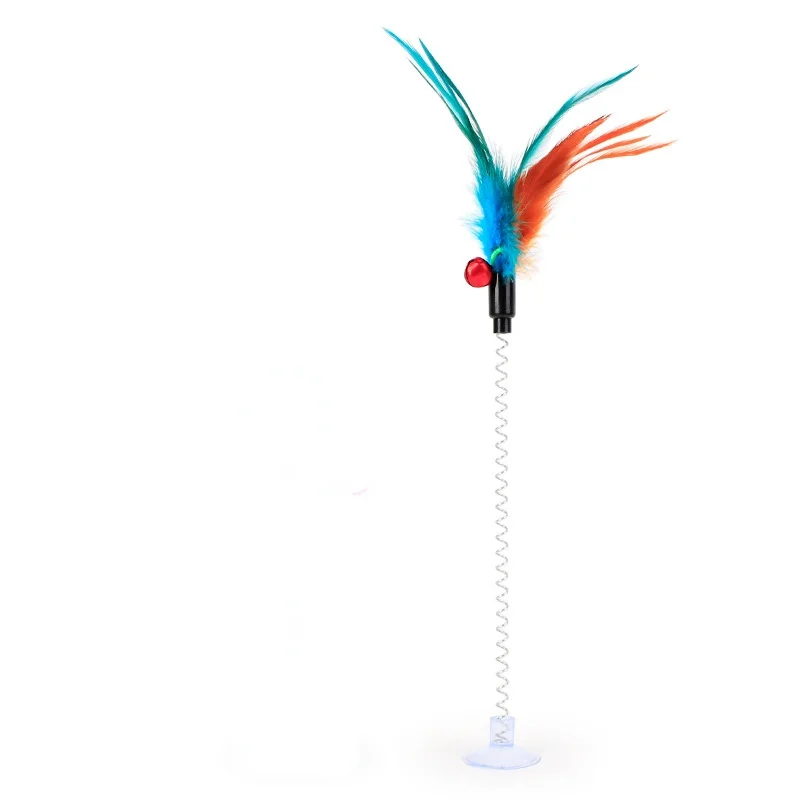Игрушка для кошек, красочная присоска, весеннее перо с колокольчиком, игрушки для домашних животных, товары для кошек, плюшевые игрушки для кошек, забавная палочка для кошек