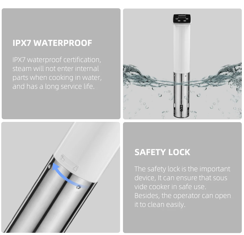 Погружной термостат ROSPEC IPX7 для приготовления Су-вид, 1100 Вт