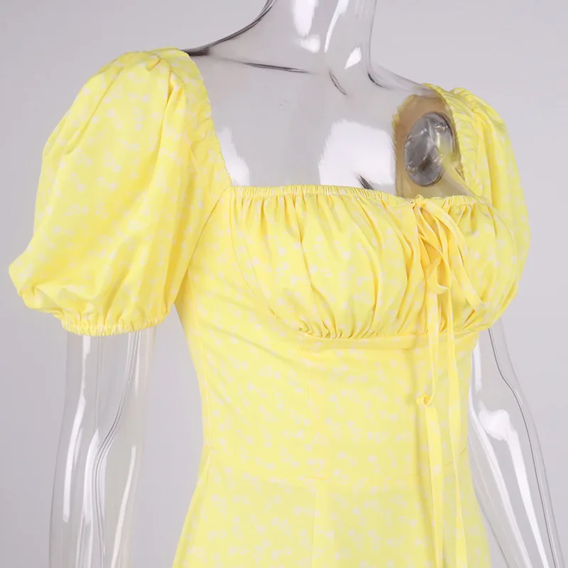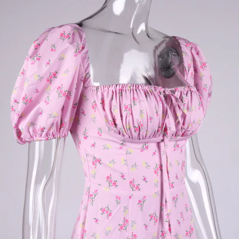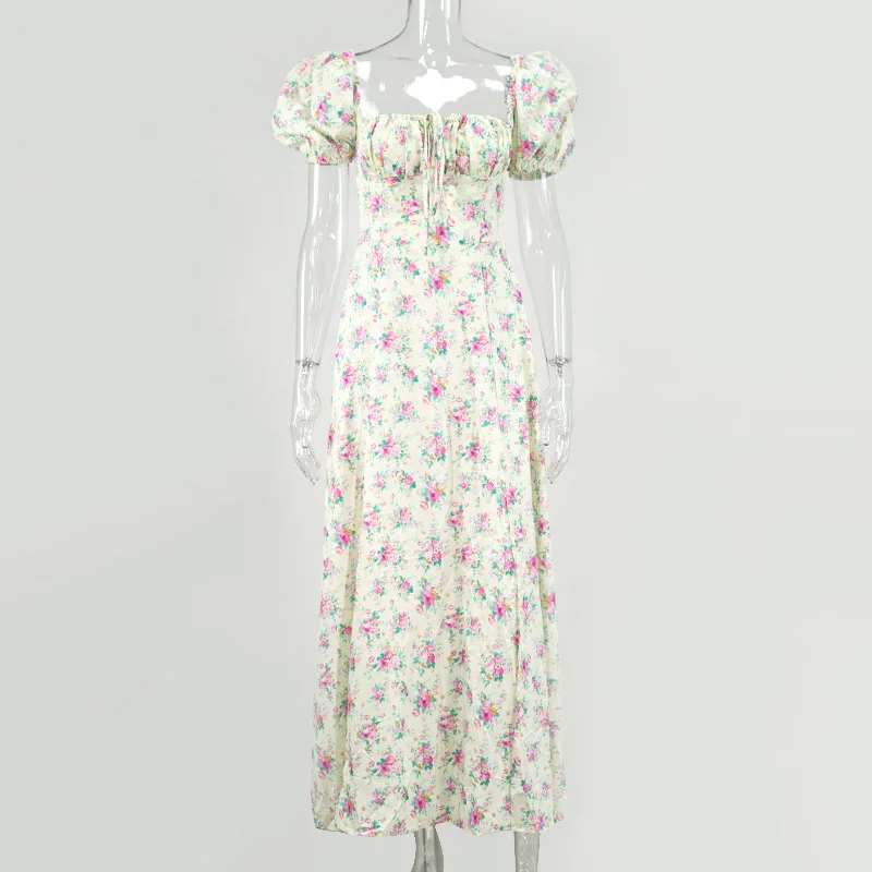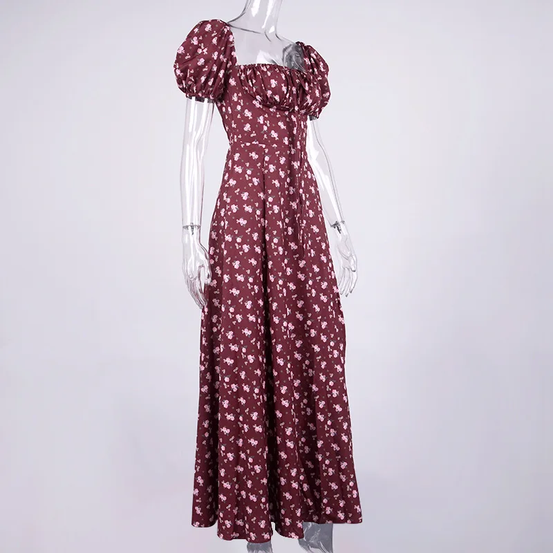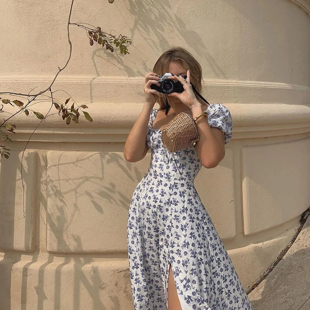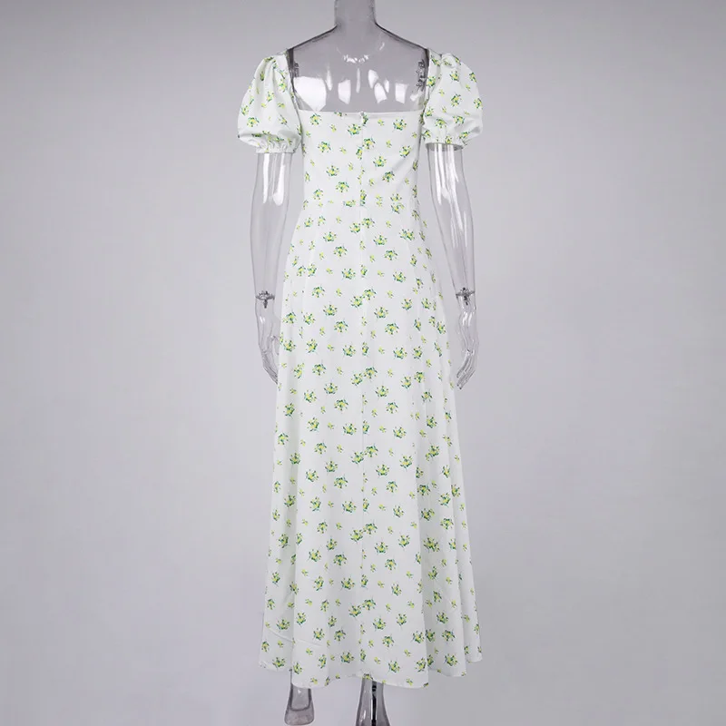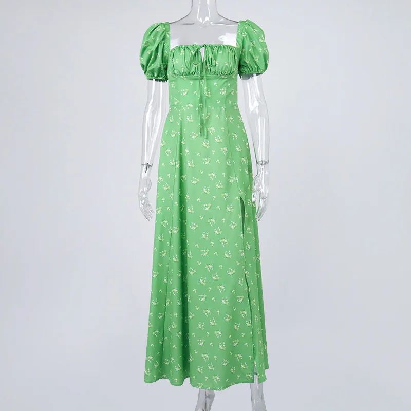 Artsu Cottagecore элегантное Цветочное платье средней длины с пышными рукавами для женщин весна-осень 2021 Grunge Fairycore платье с разрезом одежда