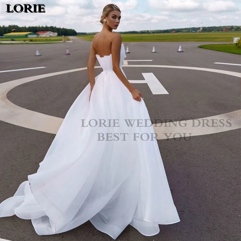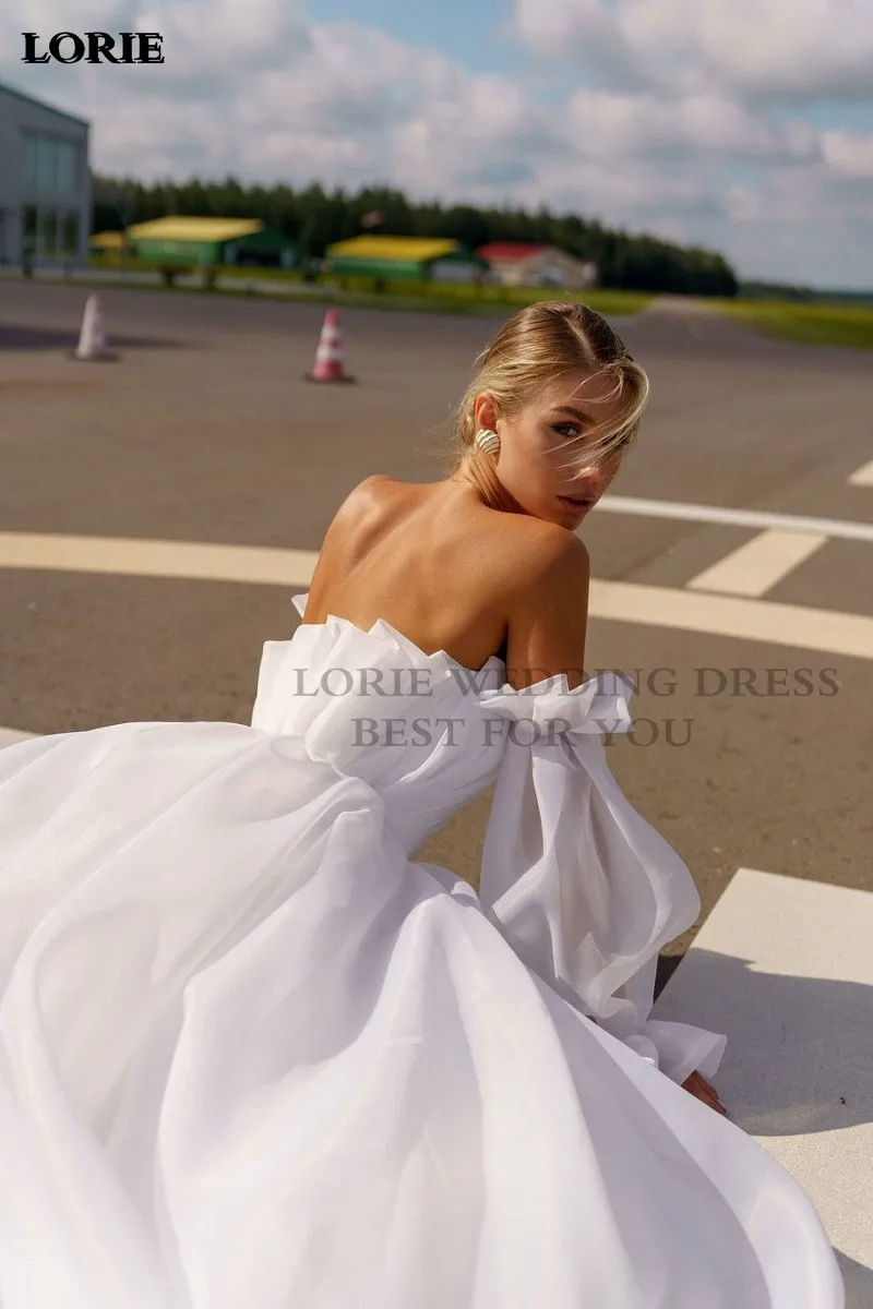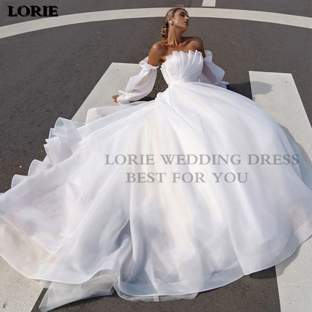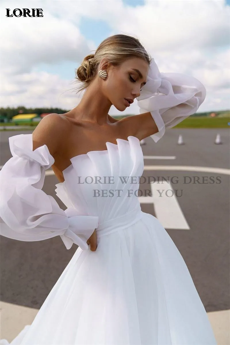 LORIE Свадебное платье из органзы со съемным пышным рукавом Свадебные платья а-силуэта Свадебные платья пляжные свадебные платья пл