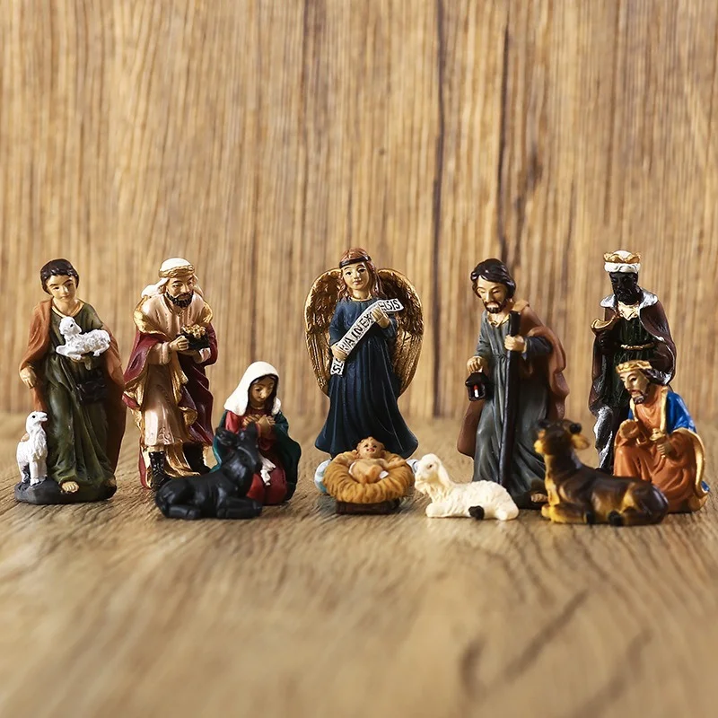 Статуэтка из смолы, 11 шт., настольные фигурки, Рождественская кров...
