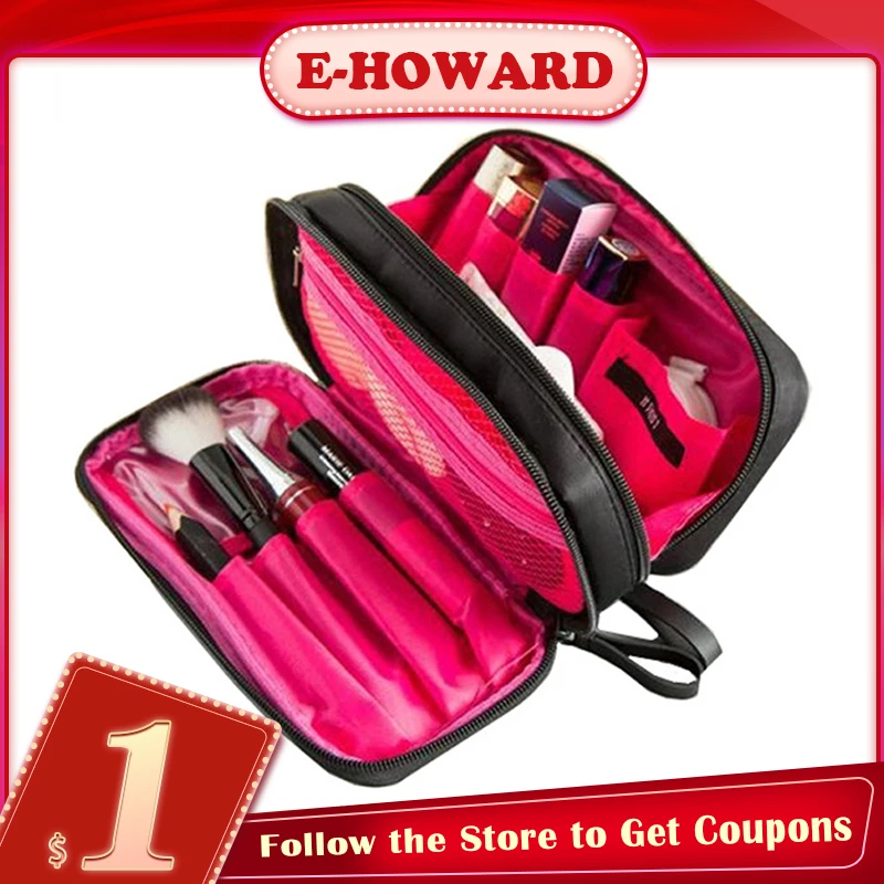 Нейлоновая дорожная косметичка на двойной молнии с кисточками для помады, сумка для туалетных принадлежностей, водонепроницаемая косметичка, сумочка, Прямая поставка