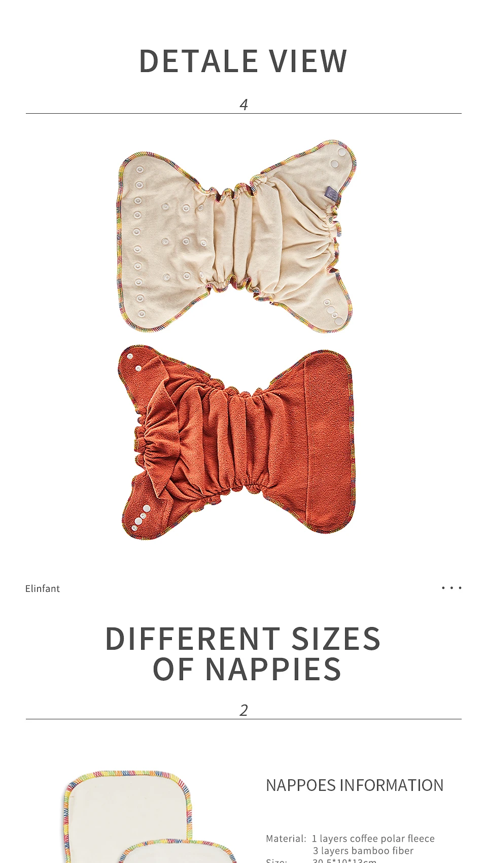 Elinfant 5 шт. кофейный флисовый многоразовый подгузник один размер Ночной AI2 моющийся подгузник из пеньковой ткани