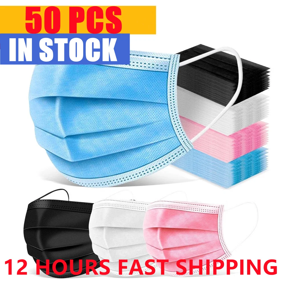 50 шт. рот маски 3-х слойные Анти-пыль одноразовые Mascarillas из нетканого материала, изготовленный аэродинамическим способом по технологии ткани хирургические маски эластичная петля уха маски для лица