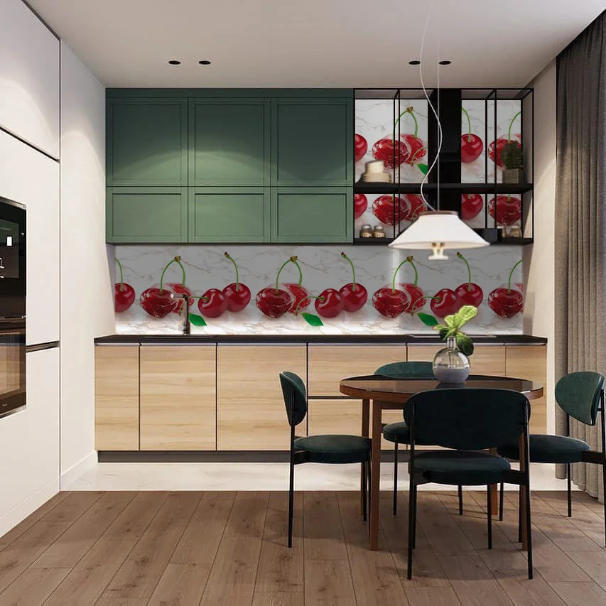 Кухонный фартук для пространства междунавесными шкафами, плитой и столешницейне просто защищает стены от влаги,копоти и загрязнений, но и придаеткухне воздушность, наполняет новымикрасками.Для его монтажа не требуетсядлительная подготовка и выравниваниестен. С его помощью можно быстро скрытьшероховатости и другие недостаткинастенной поверхности, а также придатьнеповторимую элегантность интерьеру.