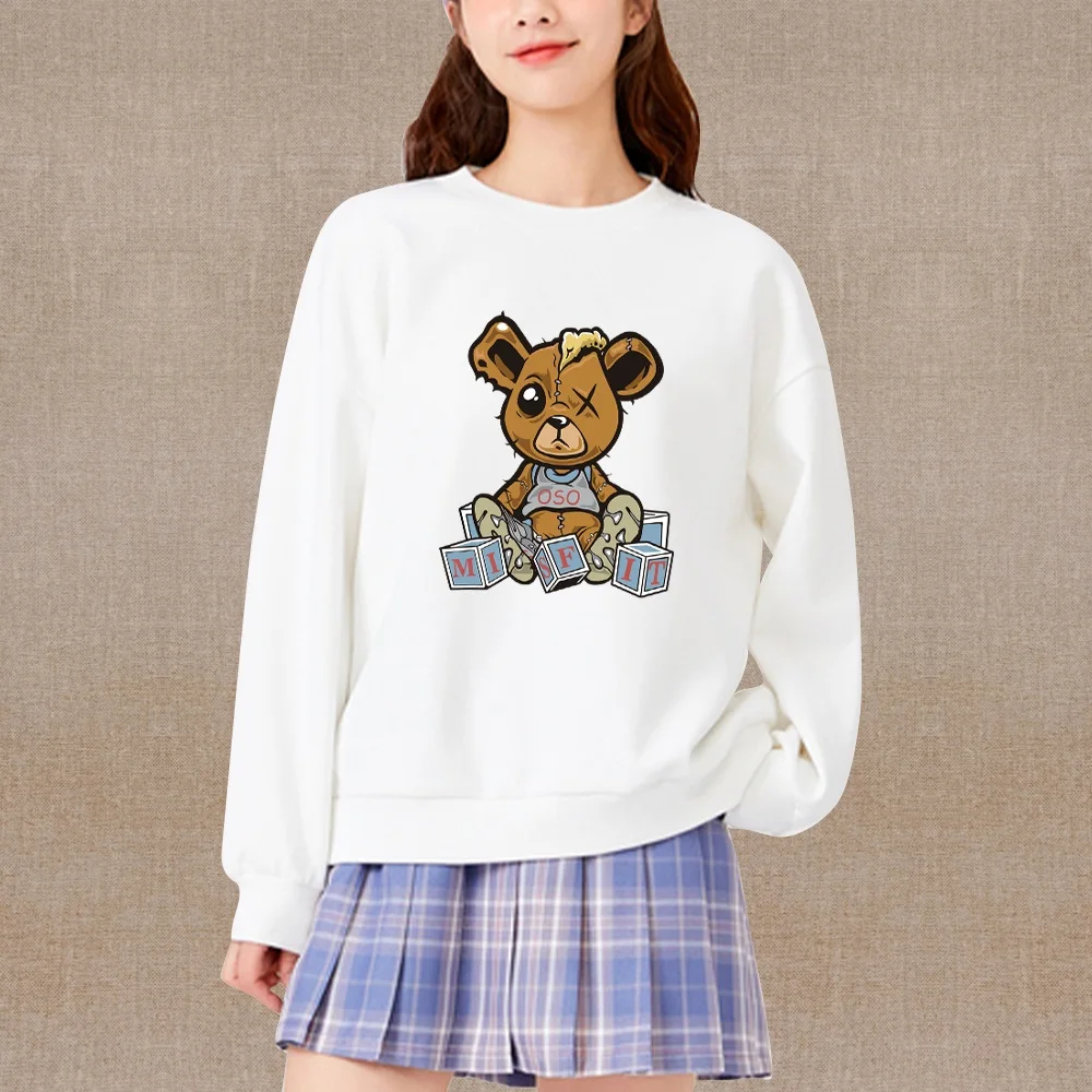 Женский Повседневный Модный милый белый пуловер, рубашка, милая Осенняя теплая толстовка с длинными рукавами и круглым вырезом из серии Мишка Тедди с мультяшным принтом