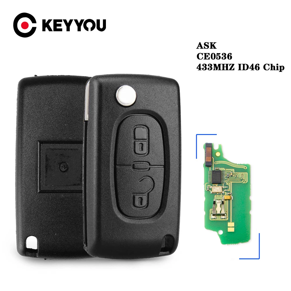 Ключ-пульт дистанционного управления KEYYOU, 2 кнопки, 433 МГц, для PEUGEOT 207 208 307 308 408 Partner (CE0536 ASKFSK, 2 кнопки HU83)