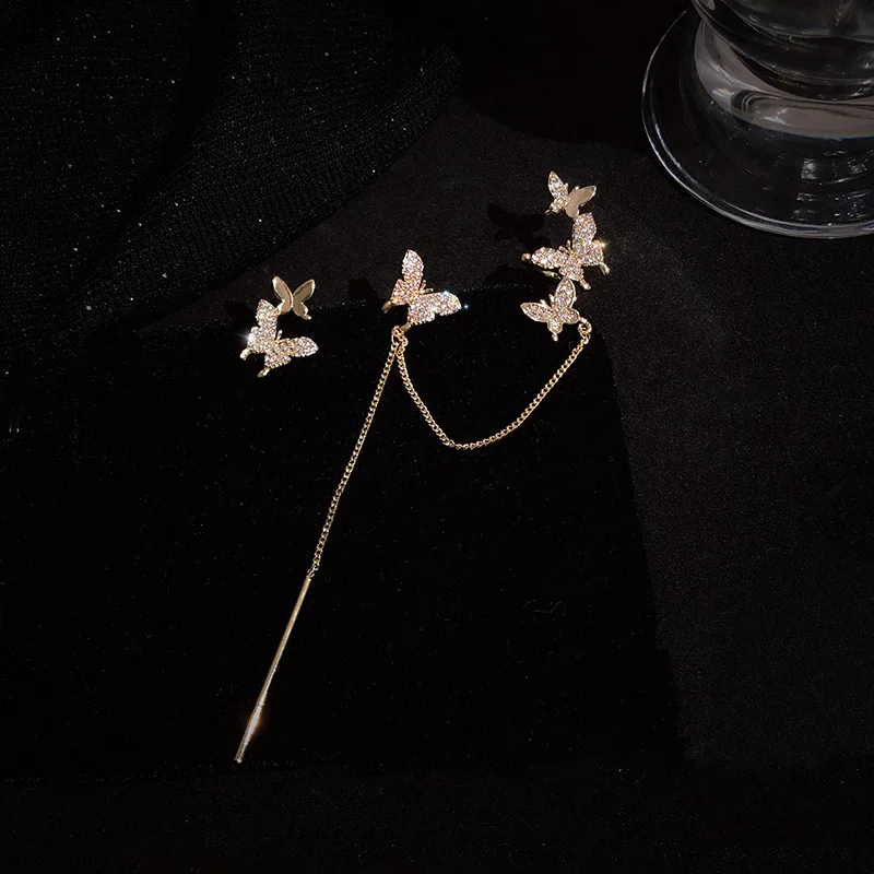 Корейские модные ювелирные серьги, ассиметричные серьги-бабочки с к...