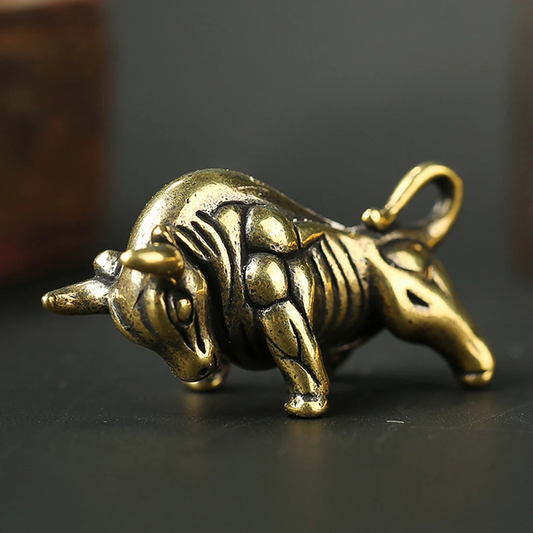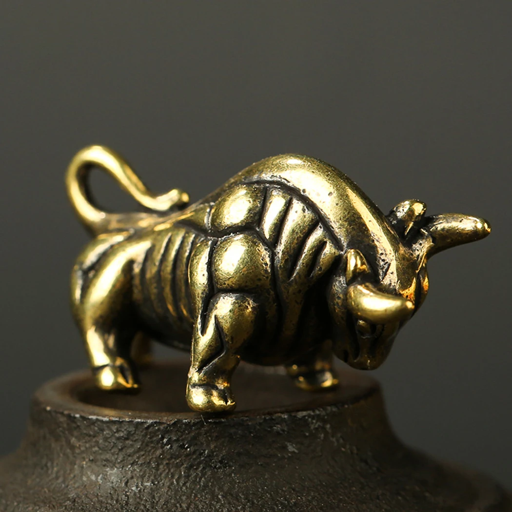 Латунное животное, искусственная корова, металлическая ретро-скульптура, Декор для дома, офиса, комнаты, Настольная статуя, медная миниатюрная статуя