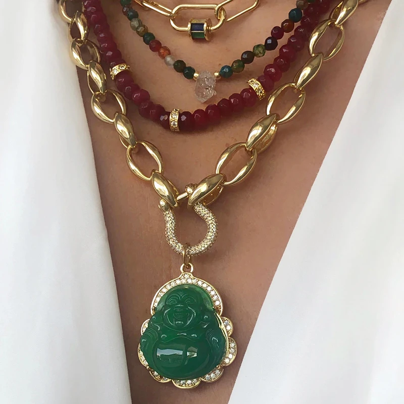 Роскошное дизайнерское ожерелье в стиле хип-хоп с кубическим цирконием, бирюзовым синим буддой, зеленым нефритовым буддой, золотым массивным ожерельем, cz, Женское Ожерелье