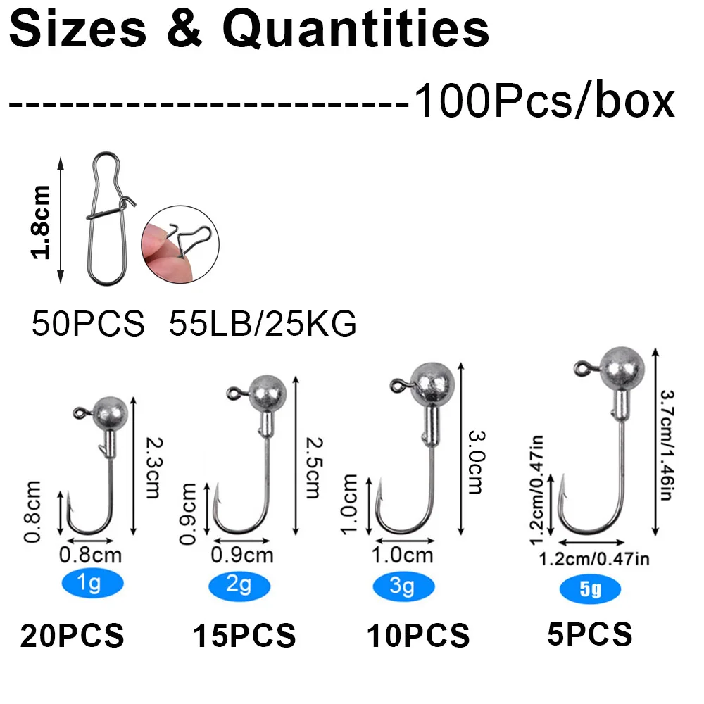 Количество:---- 100 шт. (головки Джига: 1 г 20 шт., 2 г 15 шт., 3 г 10 шт., 5g 5 шт., защелки: 2 #50 шт.)---- 58 шт. (головки Джига: 3 г 10 шт., 5g 8 шт., 7 г 6 шт., 10 г 4 шт., защелки: 3 #30 шт.)---- 20 шт. 7,5 см червь приманкиМодель: свинцовые рыболовные крючкиПримечание: возможны некоторые ошибки в измерениях, пожалуйста, не обращайте на это внимания. Спасибо