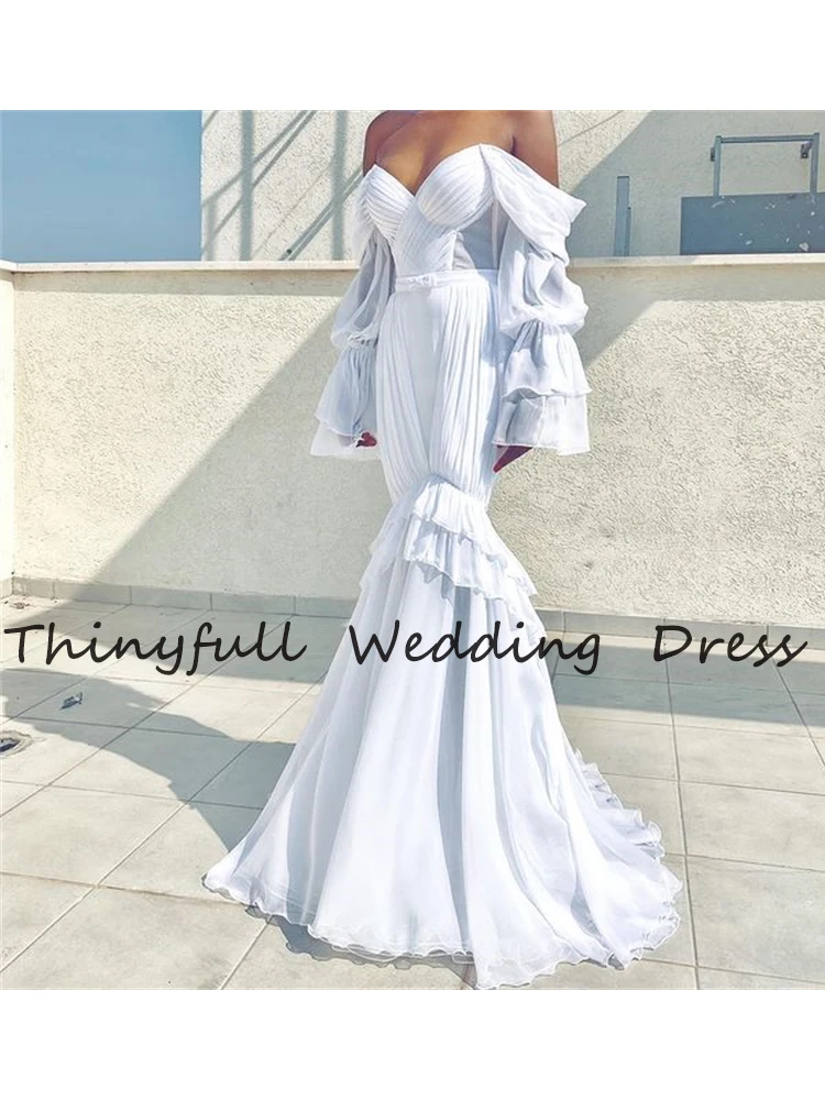 Женское длинное свадебное платье-Русалка Thinyfull, пляжное платье невесты с длинными рукавами-фонариками, свадебное платье, 2021