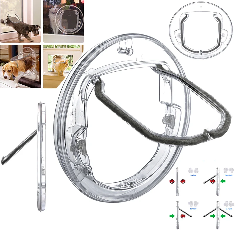 Окошко для домашних животных, круглая откидная дверь с 4 дверцами и подкладкой, для кошек, щенков, собак
