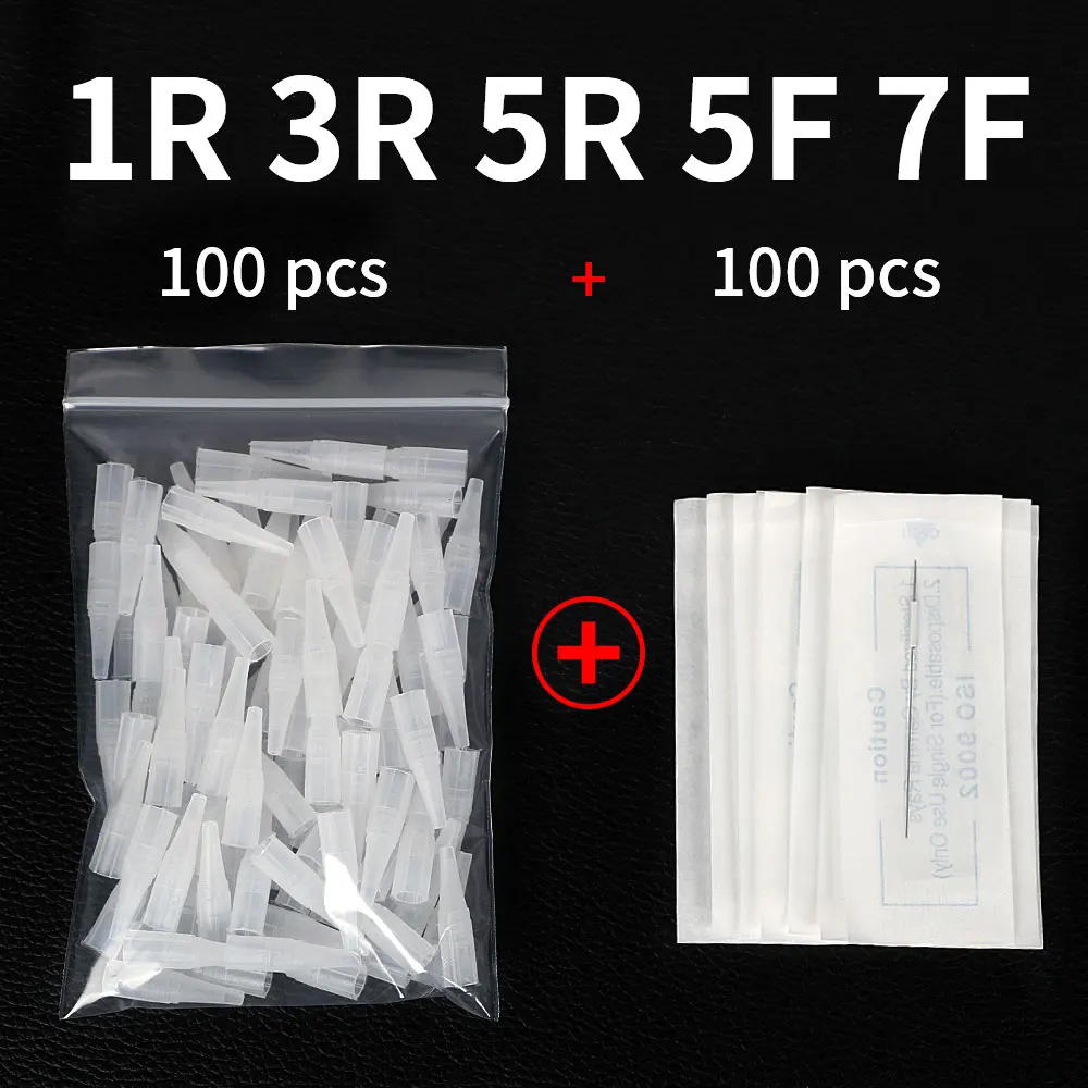 Иглы для пму + иглы одноразовые 100 шт. 1R 3R 5R 5F 7F стерилизованные иглы для микроблейдинга для перманентного макияжа бровей
