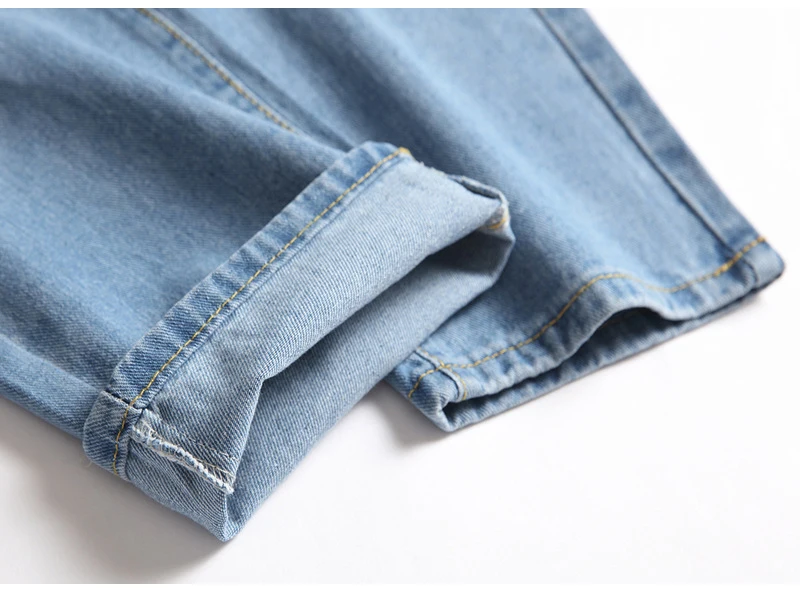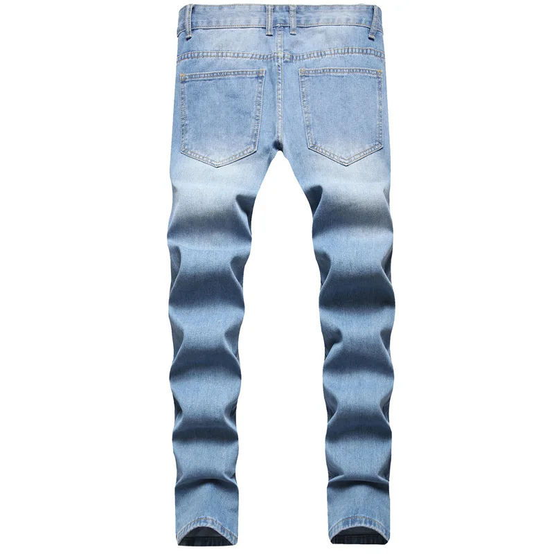 Мужской светильник, Синие рваные джинсы, уличная одежда, облегающие Прямые хлопковые брюки