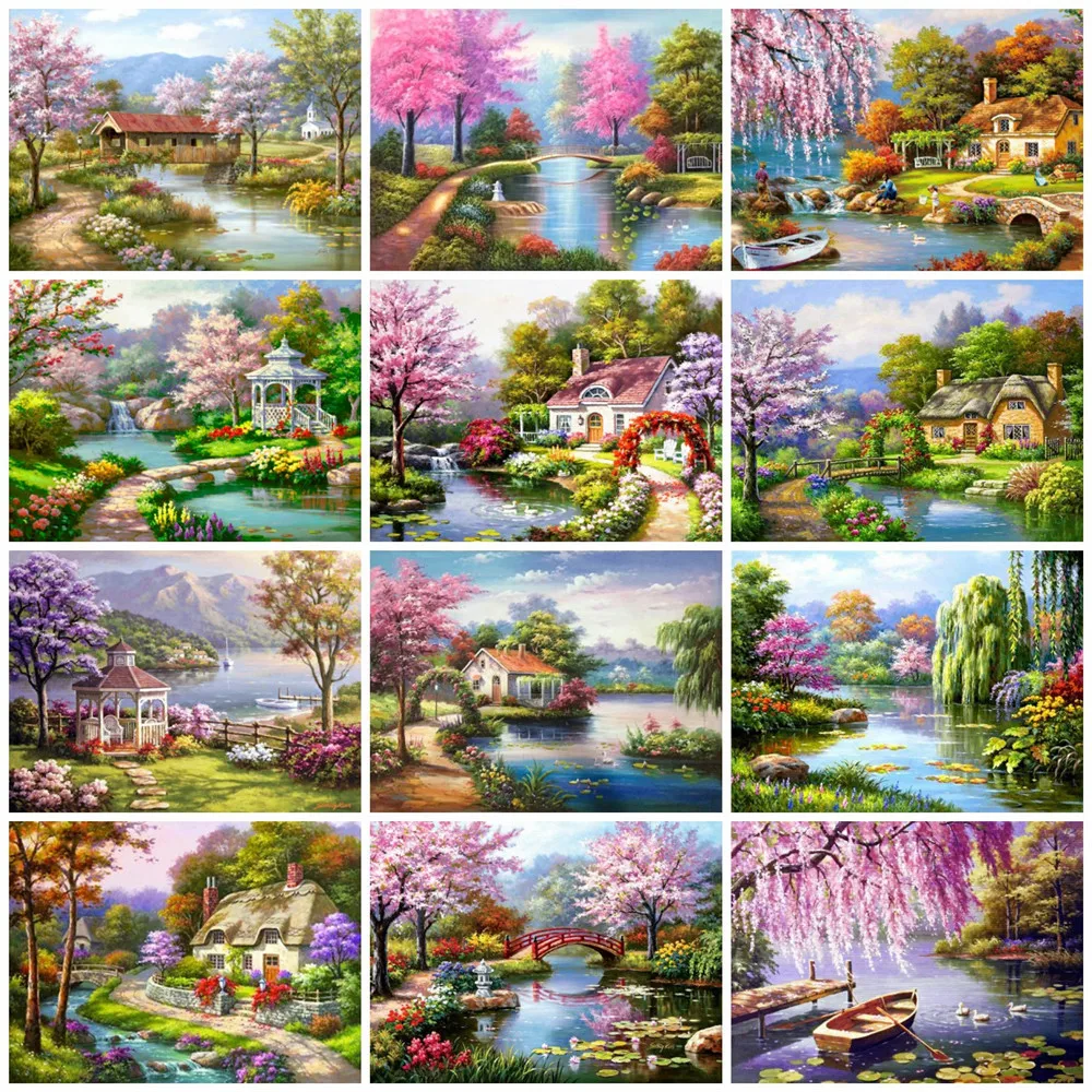 Алмазная живопись Стразы EverShine, Набор для вышивки крестиком с изображением дома, озера, пейзажа, мозаика, ручная работа, подарок