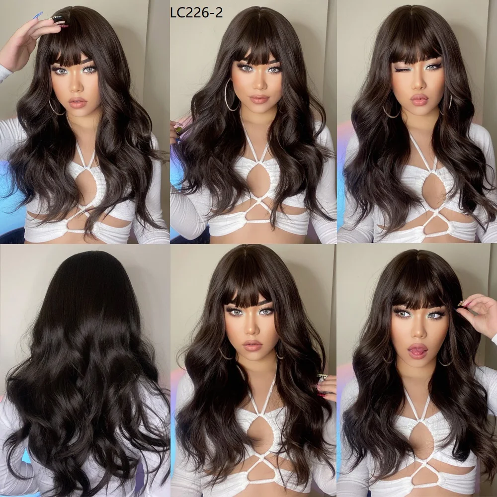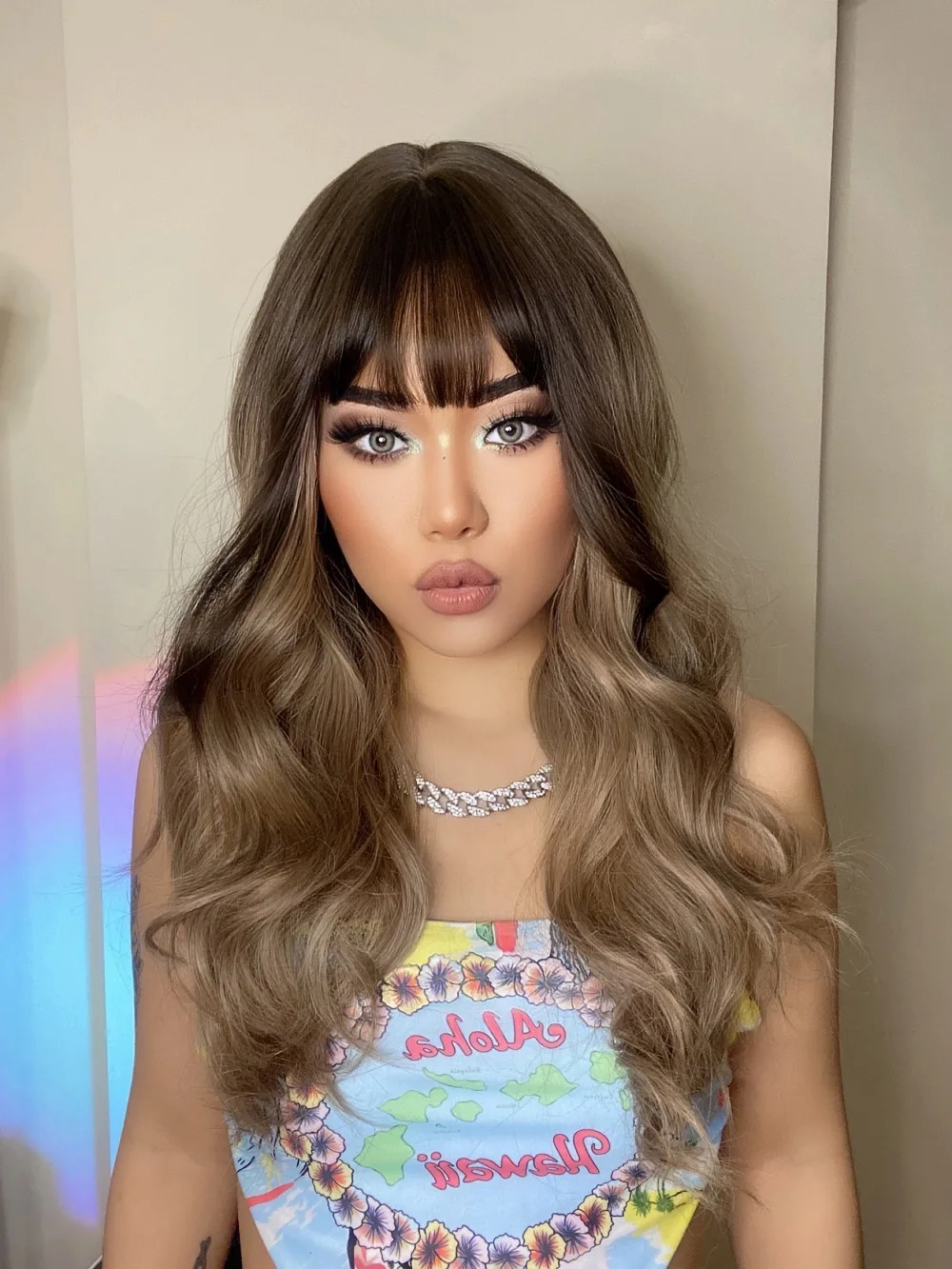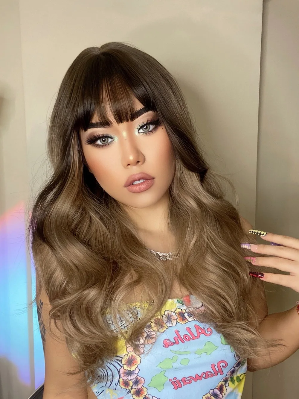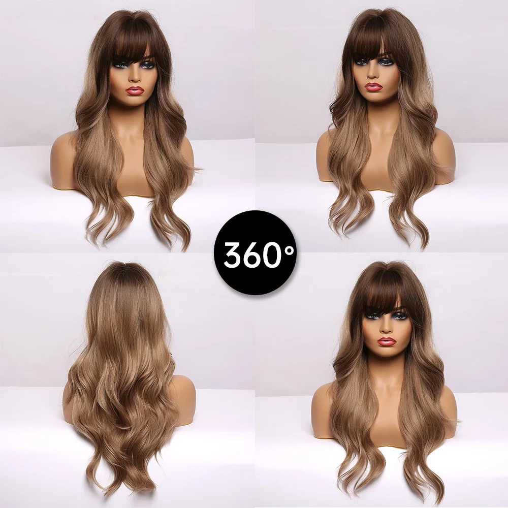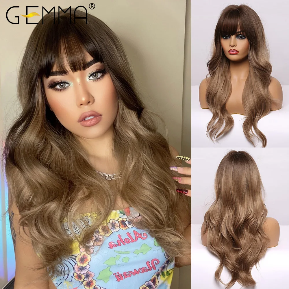 GEMMA длинные волнистые коричневые блонд синтетические парики с челкой натуральные волнистые парики для женщин африканские термостойкие косплей искусственные волосы