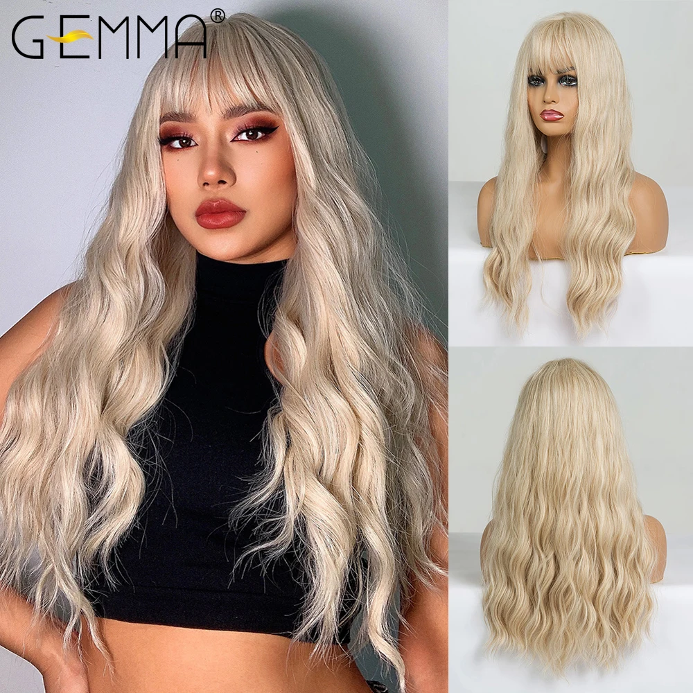 GEMMA длинные волнистые коричневые блонд синтетические парики с челкой натуральные волнистые парики для женщин африканские термостойкие косплей волосы