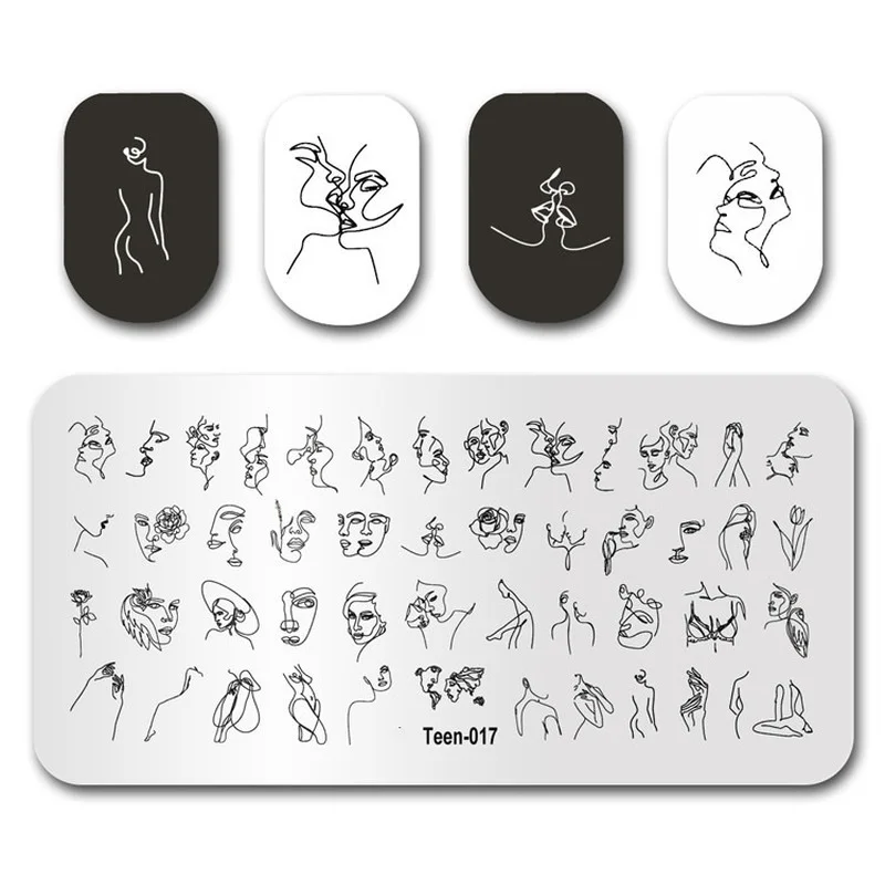 Лист цветок полоса дизайн штамповки пластины абстрактные леди лицо дизайн ногтей доска цветочный сталь Геометрическая Печать трафарет