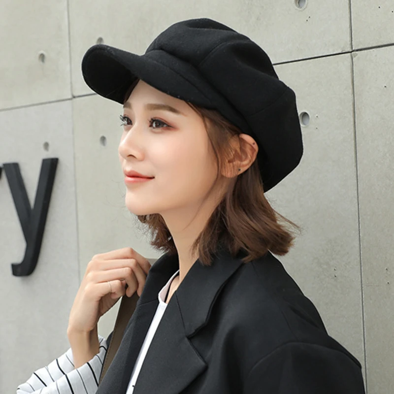 Лидер продаж, регулируемый Зимний берет для родителей и детей для женщин, однотонная простая восьмиугольная кепка газетчика, женская повседневная шерстяная шапка, кепка художника для девочек