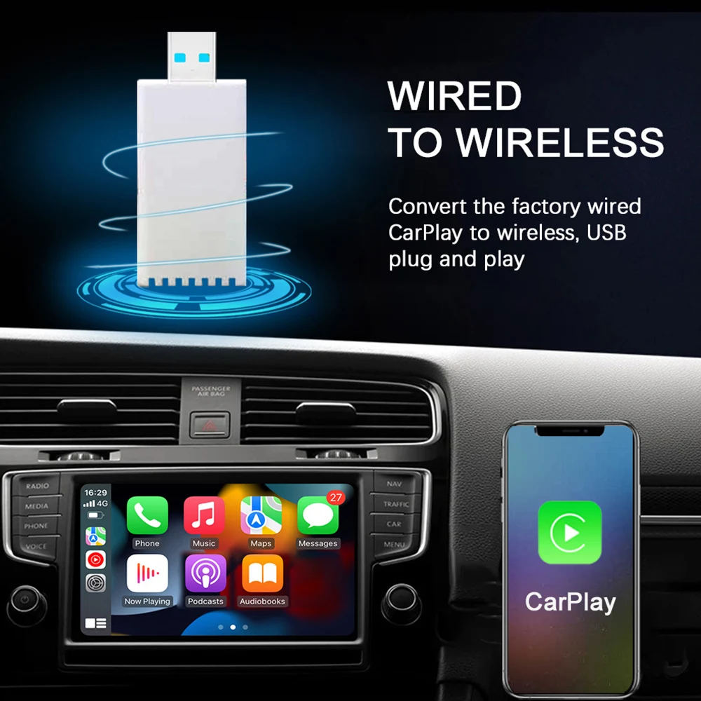 Беспроводной Wi-Fi ключ CarPlay, адаптер для IOS 14, проводной к беспроводному модульному адаптеру для BenzAudiMazdaFordCitroenHondaNissan