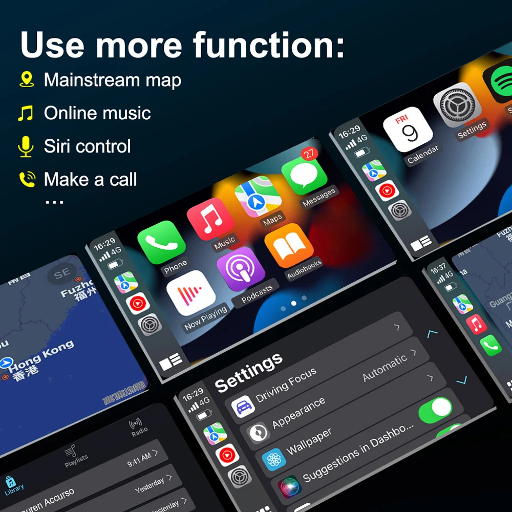 Примечание:1. Перед покупкой проверьте, имеет ли автомобиль встроенную проводную функцию CarPlay, чехол не может использоваться после покупки.2. Этот продукт не поддерживает телефоны android, только для iPhone 6 и более поздних моделей, версия программного обеспечения iOSУпаковочный лист