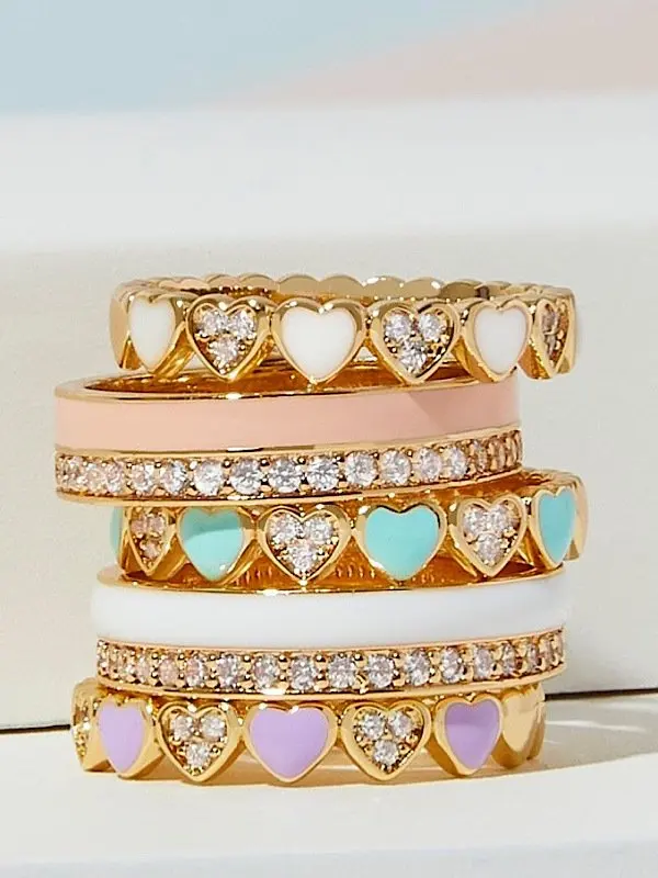 Красочные Вечность кольцо для девушки женщины в форме сердца Пастельная Эмаль Проложить 5А кубического циркония модные укладки полосы