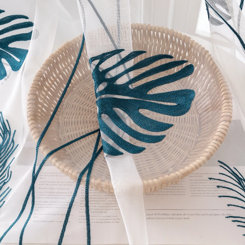 Вышитые листья Miling, тюлевые занавески для гостиной, спальни, кух...