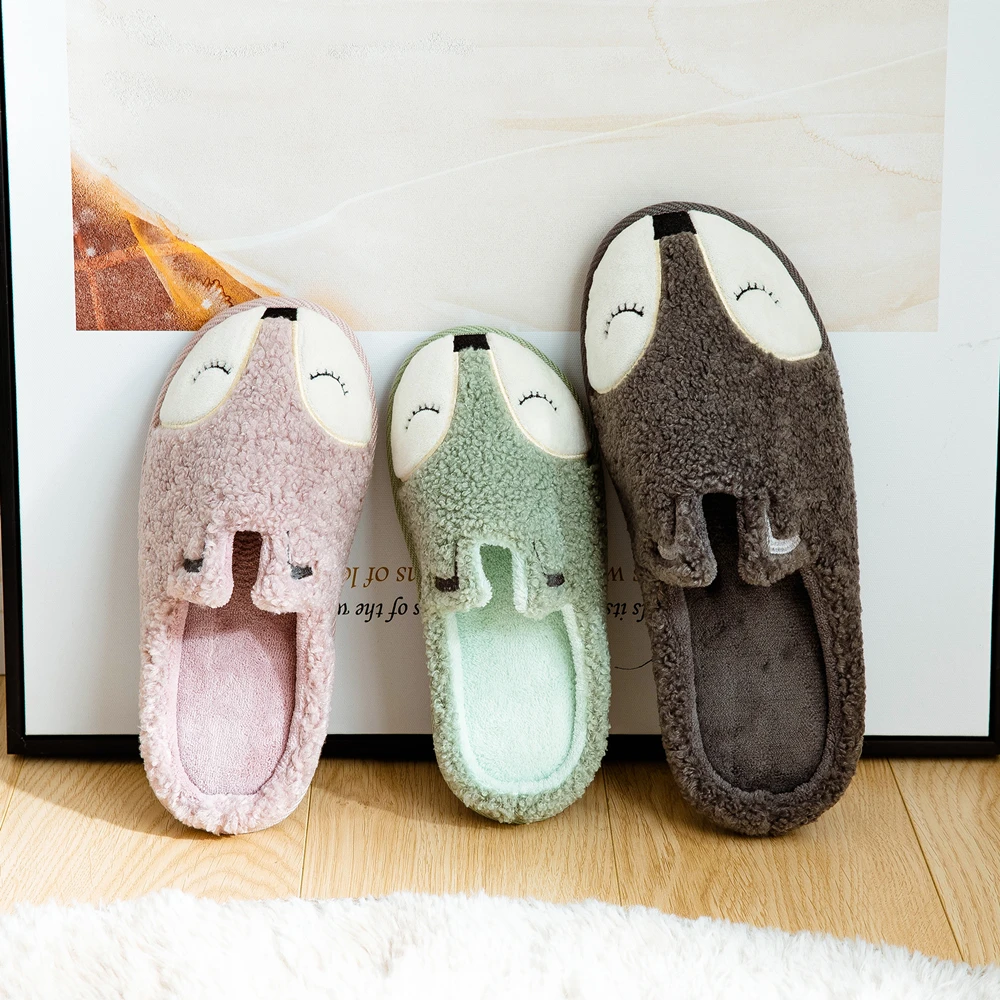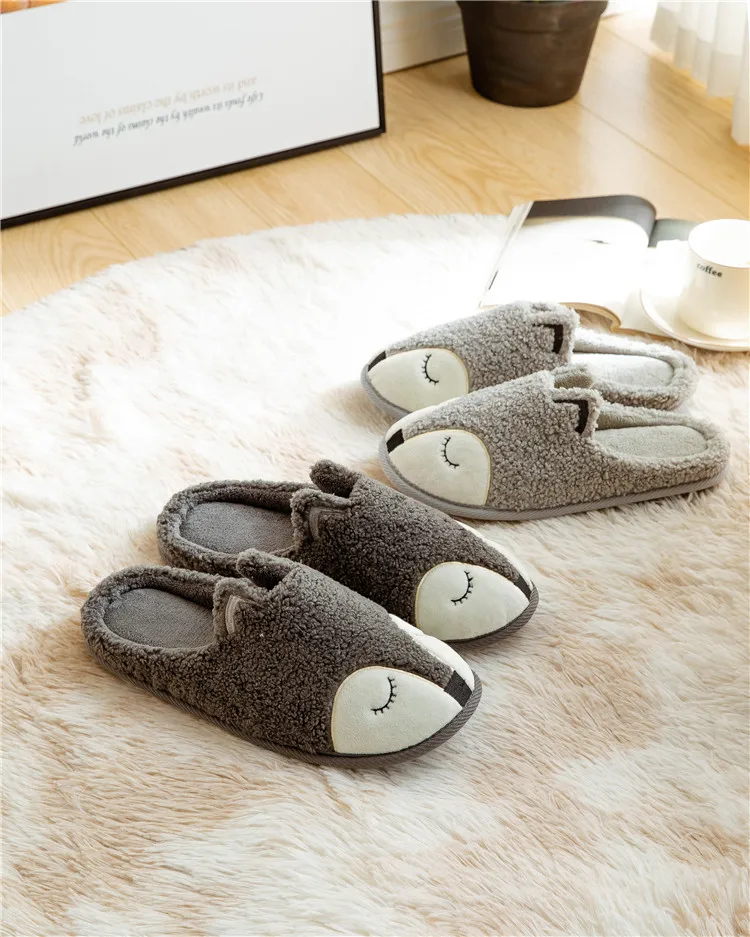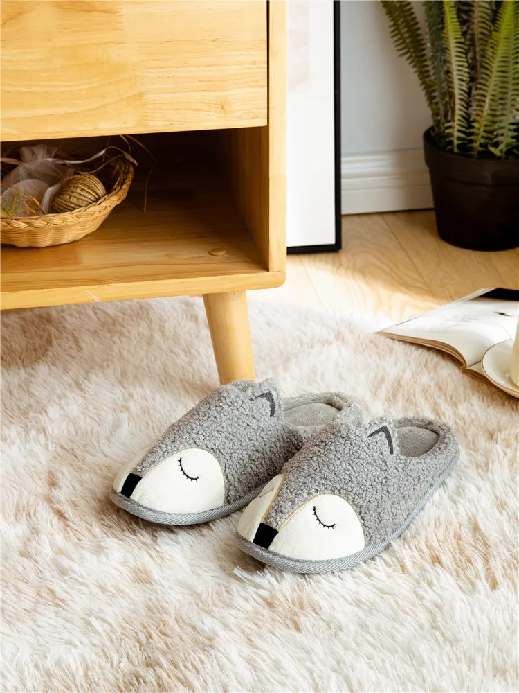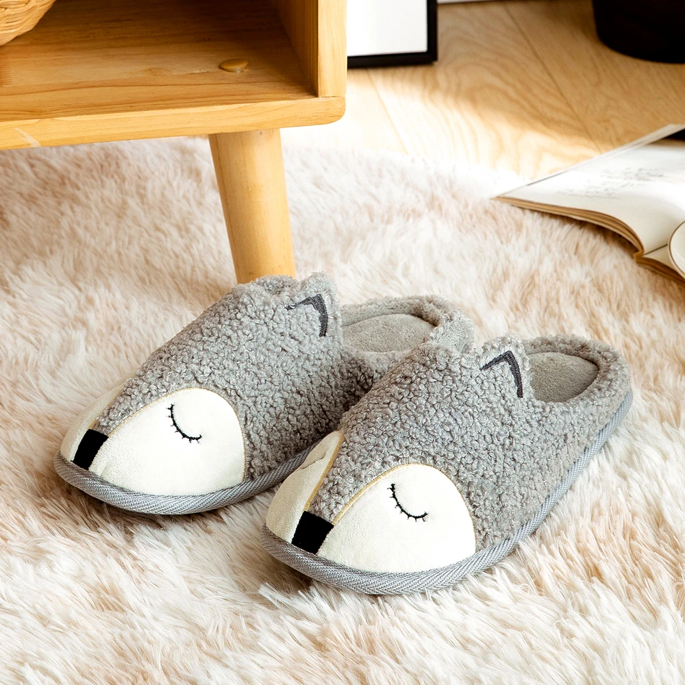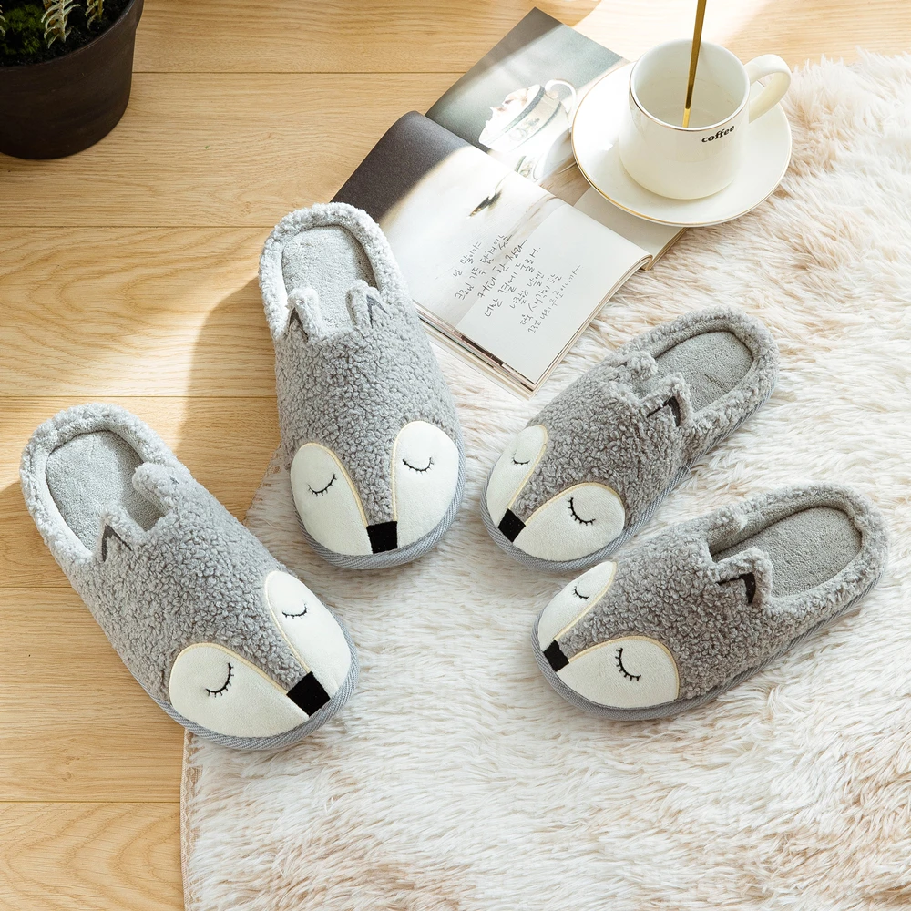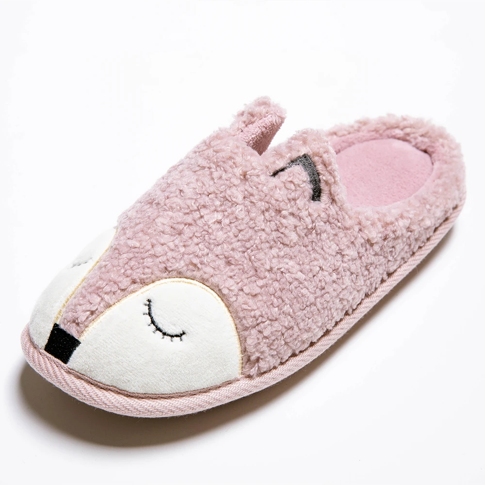 Детские меховые тапочки, мультяшный домик из лисы и ягненка, теплая плюшевая обувь для мальчиков и девочек, хлопковая обувь, мягкая подошва, пушистые тапочки, зима