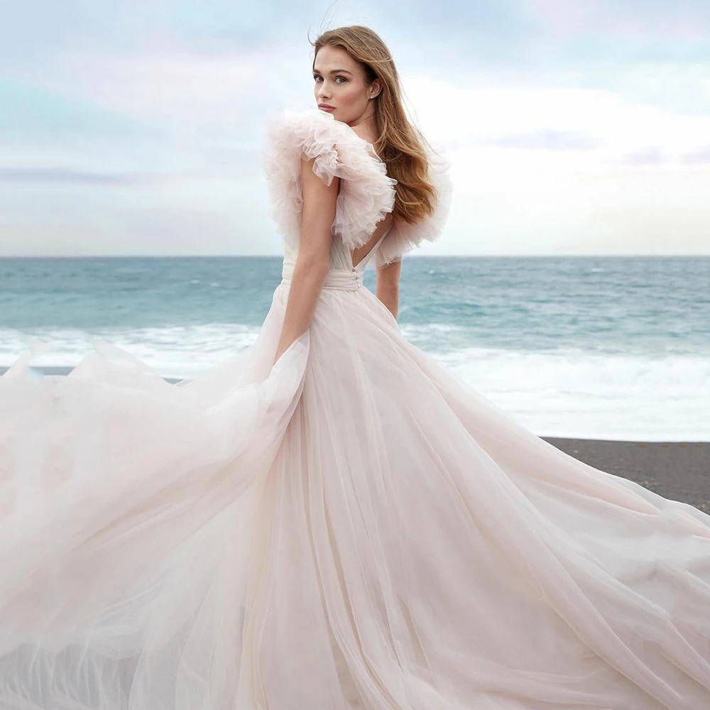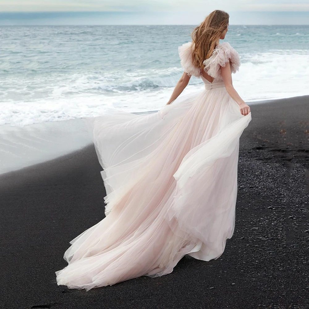 Женское свадебное платье без рукавов Sevintage, пыльно-розовое ТРАПЕЦИЕВИДНОЕ ПЛАТЬЕ С V-образным вырезом и открытой спиной, современное свадебное платье