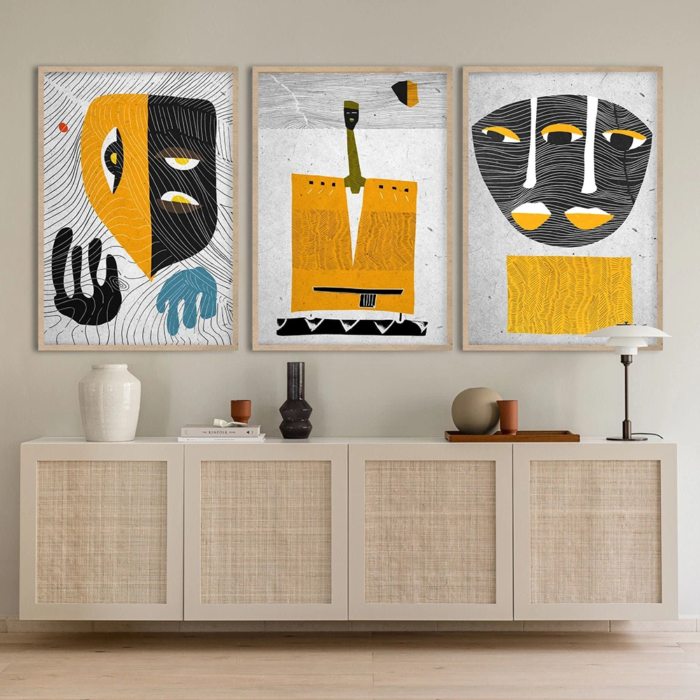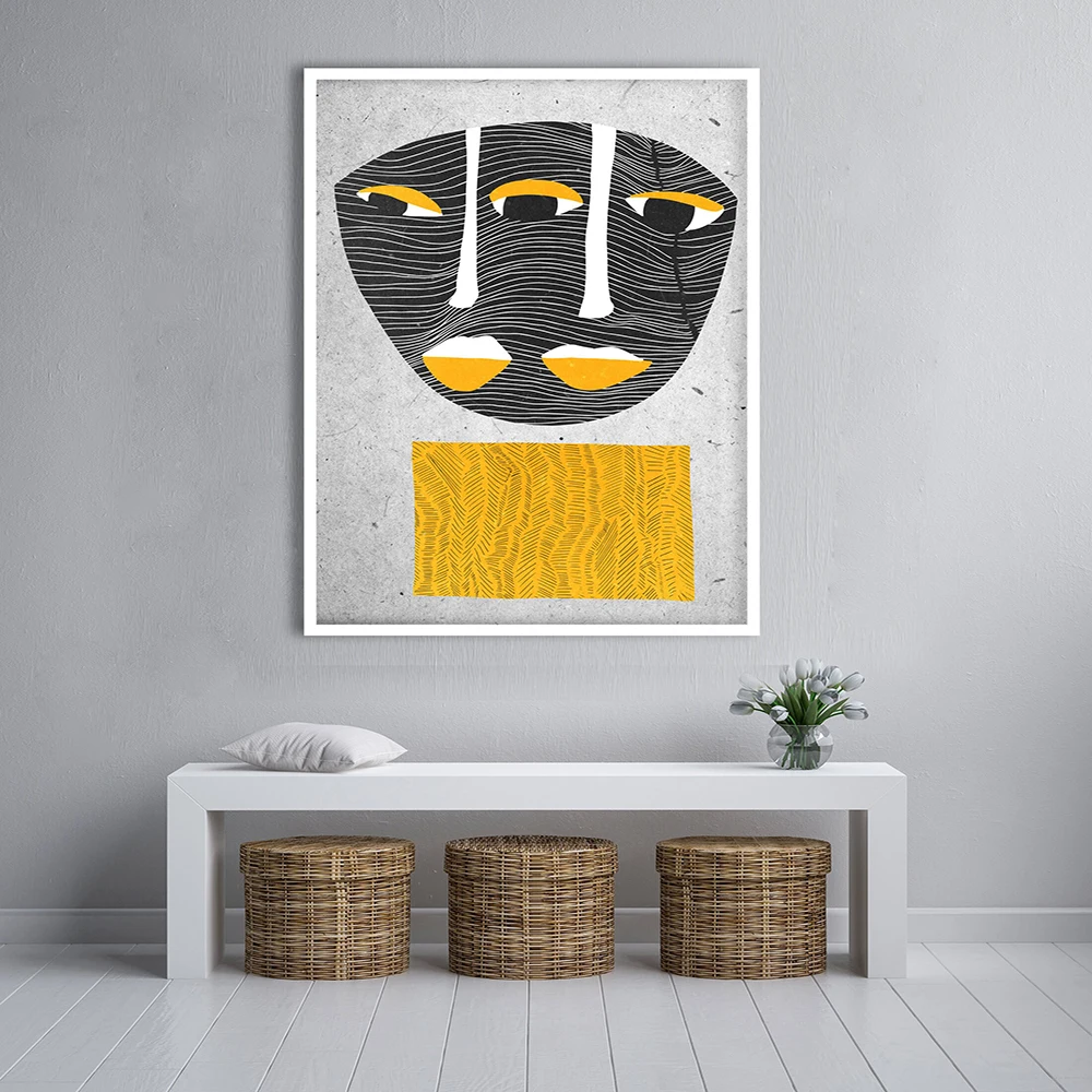 Современные минималистичные постеры в африканском стиле, черные, белые, желтые маски, африканские, американские художественные принты, богемный Декор для гостиной