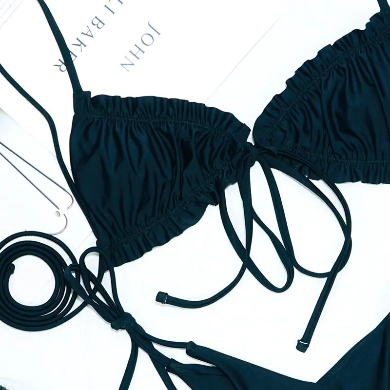Соблазнительные бикини Miyouj со складками, Женский однотонный купальник, женский купальник, модный купальный костюм с лентами, бандажный комплект бикини, купальник Монокини