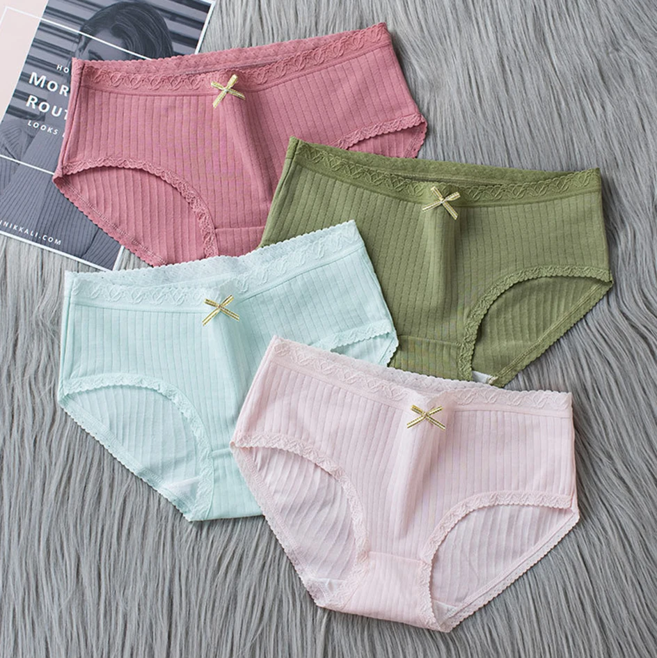 3 шт.компл. женские трусики, женские трусики, дышащее нижнее белье из чистого хлопка с бантом, полосатые кружевные стринги со средней талией, брифы, женское нижнее белье