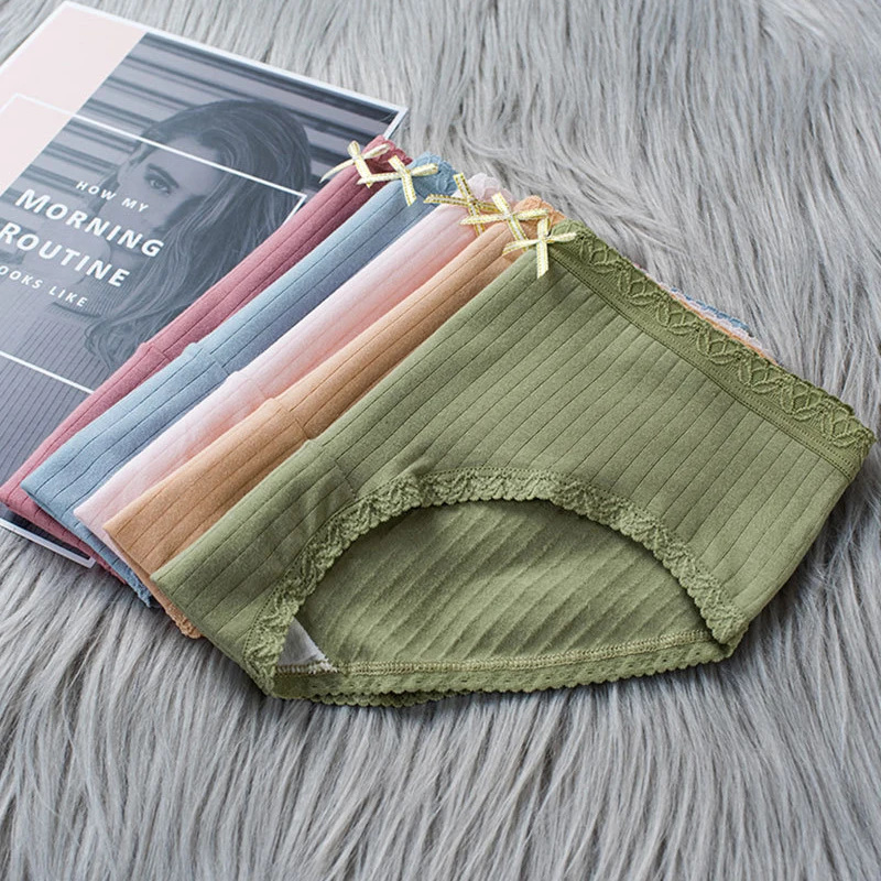 Нижнее белье женское в японском стиле, хлопковые трусы со средней п...