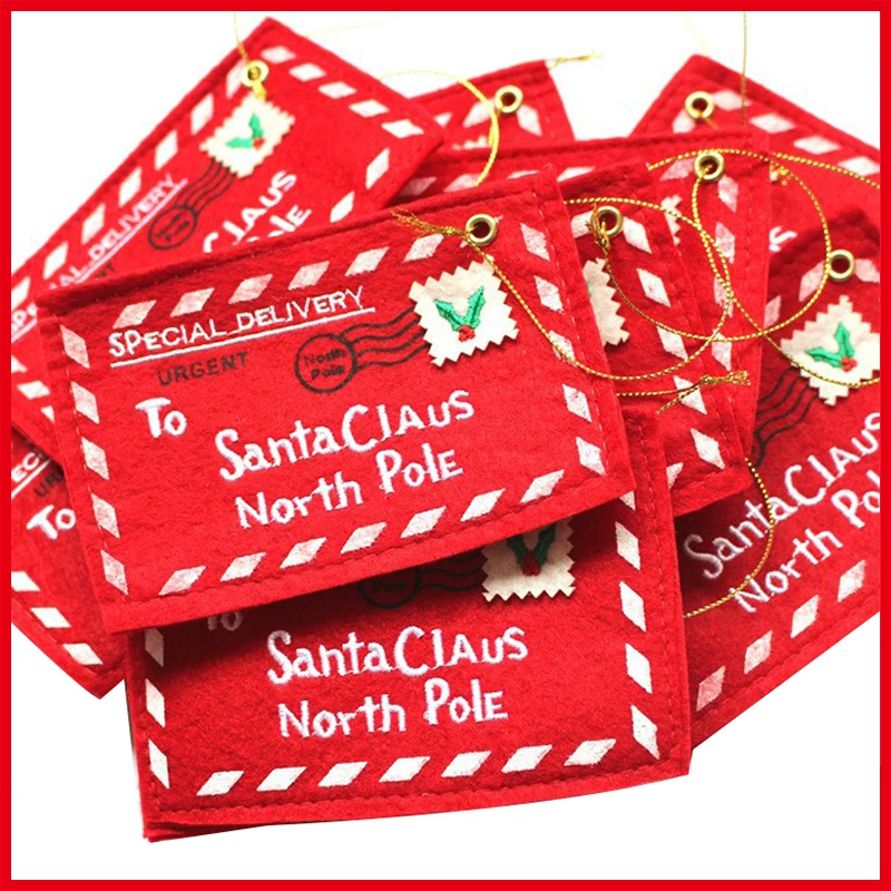 5 шт. Рождественский конверт с подвесными буквами, сумка для конфет с Санта-Клаусом, войлочный конверт с вышивкой, украшение, детский подарок