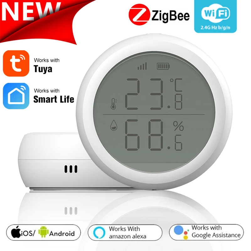 Датчик влажности и температуры Tuya Smart Life Zigbee, комнатный гигрометр с ЖК-дисплеем, работает с Google Assistant