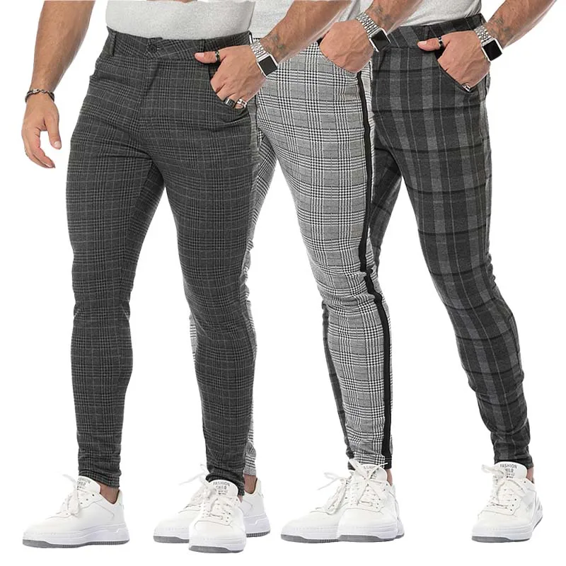 Брюки мужские спортивные в клетку, уличная одежда, джоггеры, спортивные трико, эластичные повседневные спортивные штаны в полоску в стиле хип-хоп