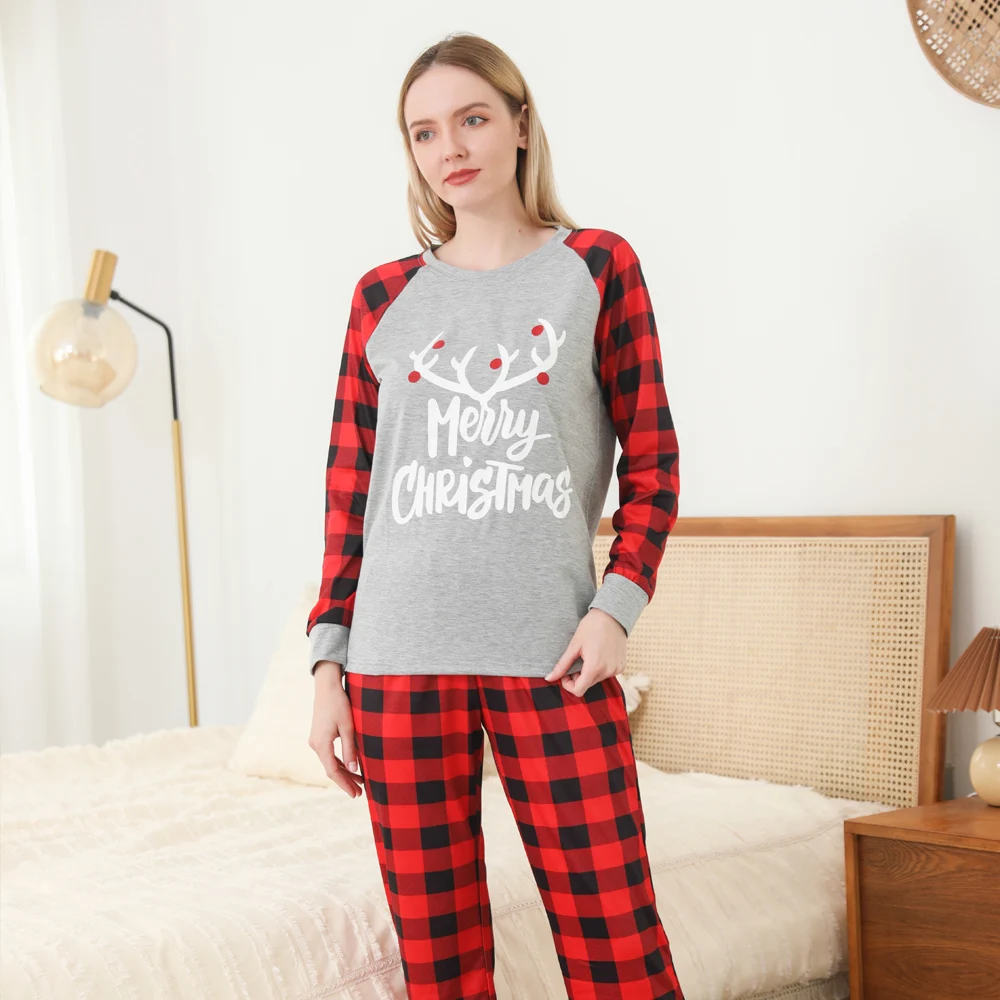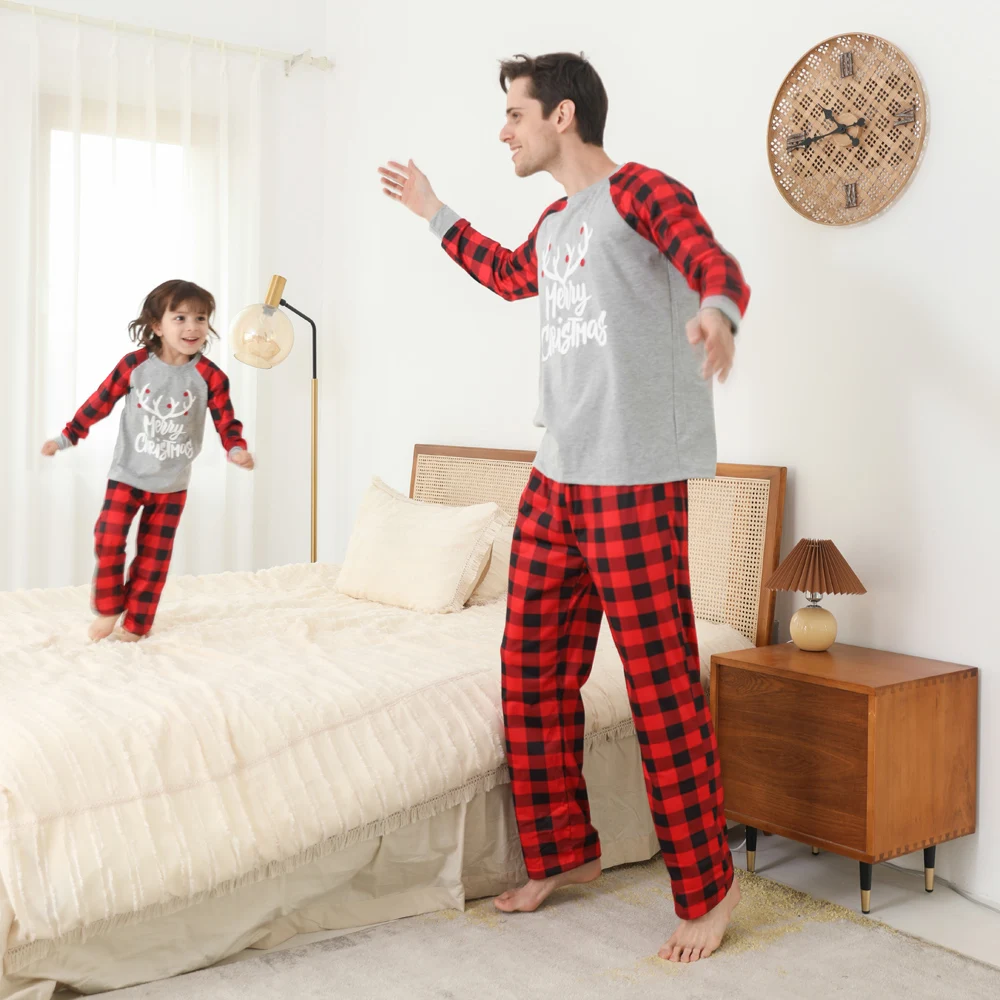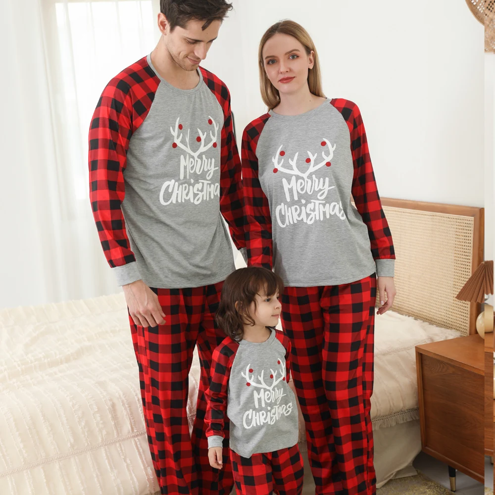 Пижамный комплект в клетку с рождественским оленем, семейный образ, одинаковые наряды, Рождественская одежда для сна для мамы, отца, детей, Семейный комплект одежды